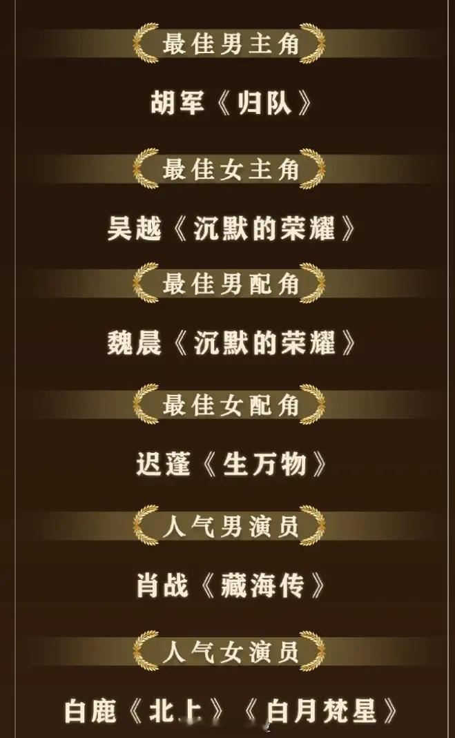 影视榜样2025奖项公布!这个奖项是北京日报举办的,最佳剧集《沉默的荣耀》,人气剧集《藏海传》,《六姊妹》,《国色芳华》,最佳男主《归队》的胡军,最佳女主《沉默的荣耀》的吴越,最佳男配《沉默的荣耀》魏晨,最佳女配《生万物》迟蓬,人气男演员《藏海传》肖战,人气女演员《北上》,《白月梵星》的白鹿。