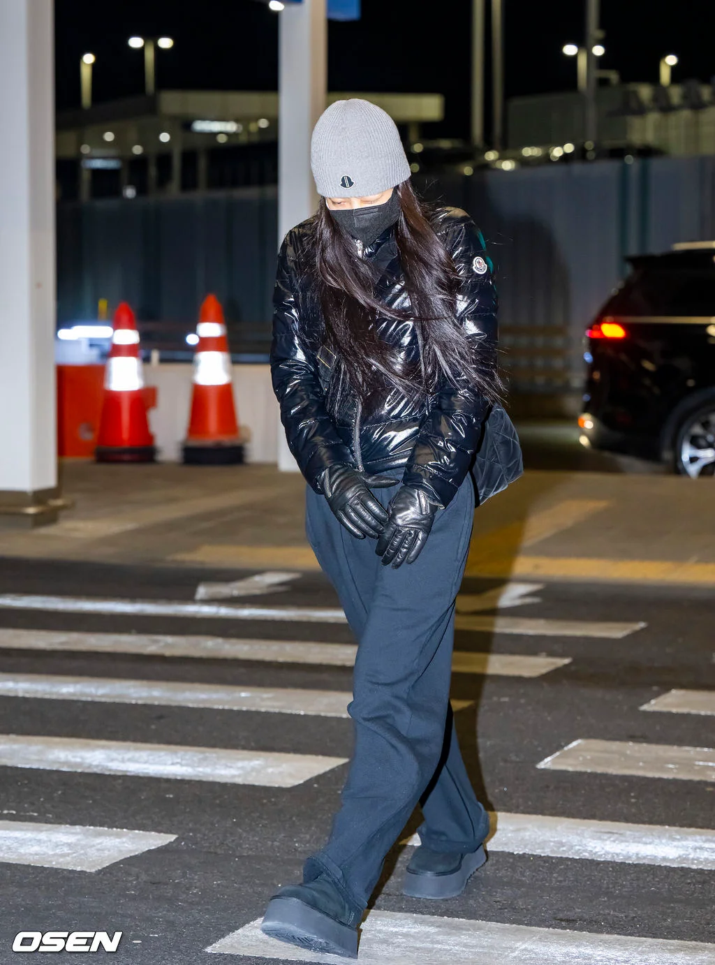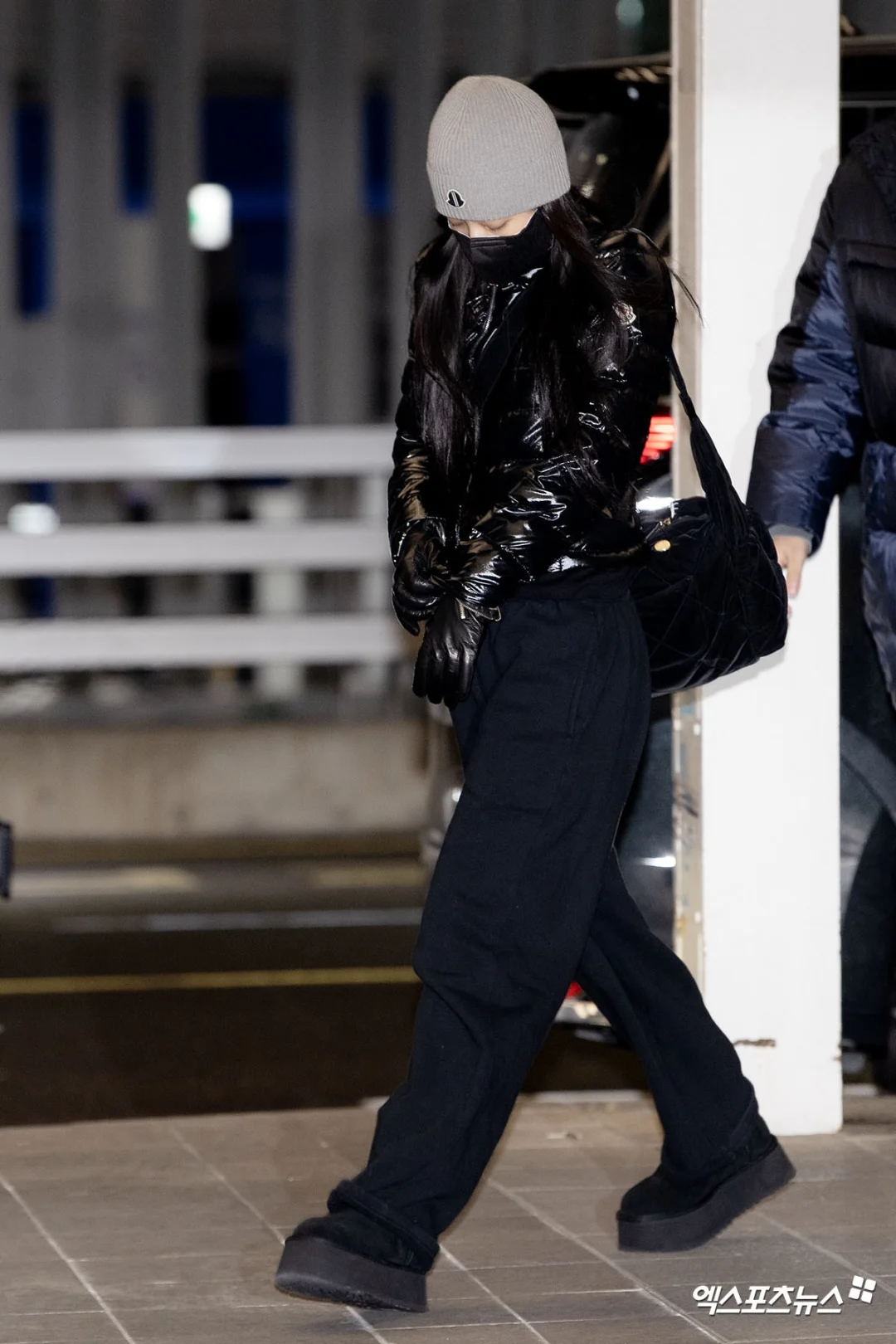 Jennie今日机场街拍私服,穿得保暖!
