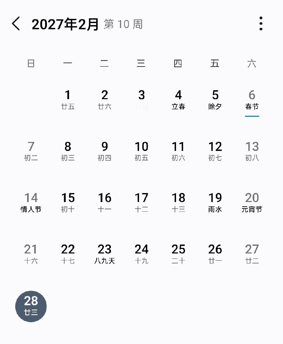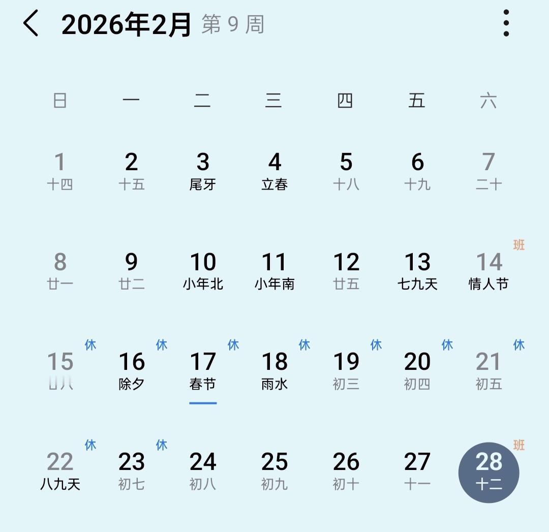 2026年的2月确实有点整齐!根据英语国家的习惯,周日是一个星期的第一天,所以,周日放第一排,正好2月1日是周日,今年2月只有28天,正好是4周,也就是4排,很整齐,这么整齐是823年一遇,很难得。