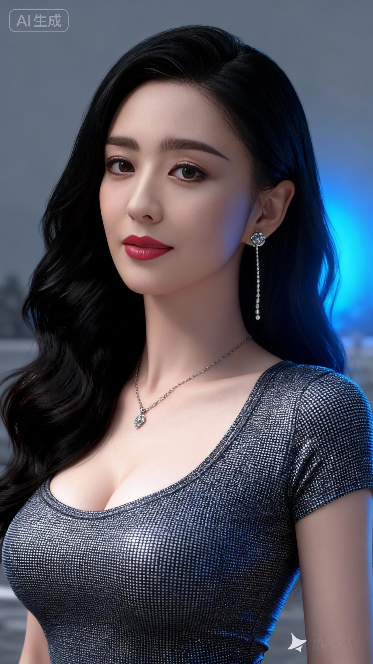 优雅黑发,红唇诱惑,闪耀耳环,时尚穿搭