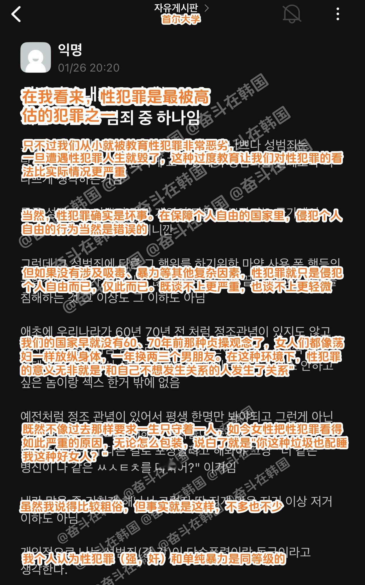 首尔大的韩男对性犯罪的看法(?) 海外新鲜事 热点现场