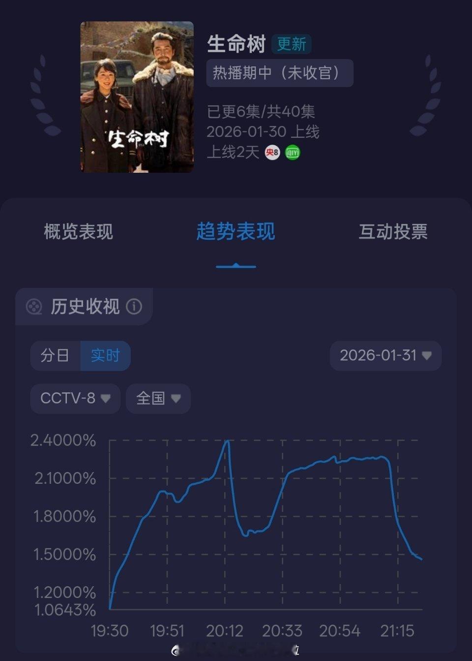 生命树收视逆跌才次日谈不上什么逆跌吧,《生命树》就是环保剧,任务剧呀,在题材受限情况下首日表现一般般很正常,但是次日收视和网播都稳住了,走势又好起来了,这剧还要多看几天