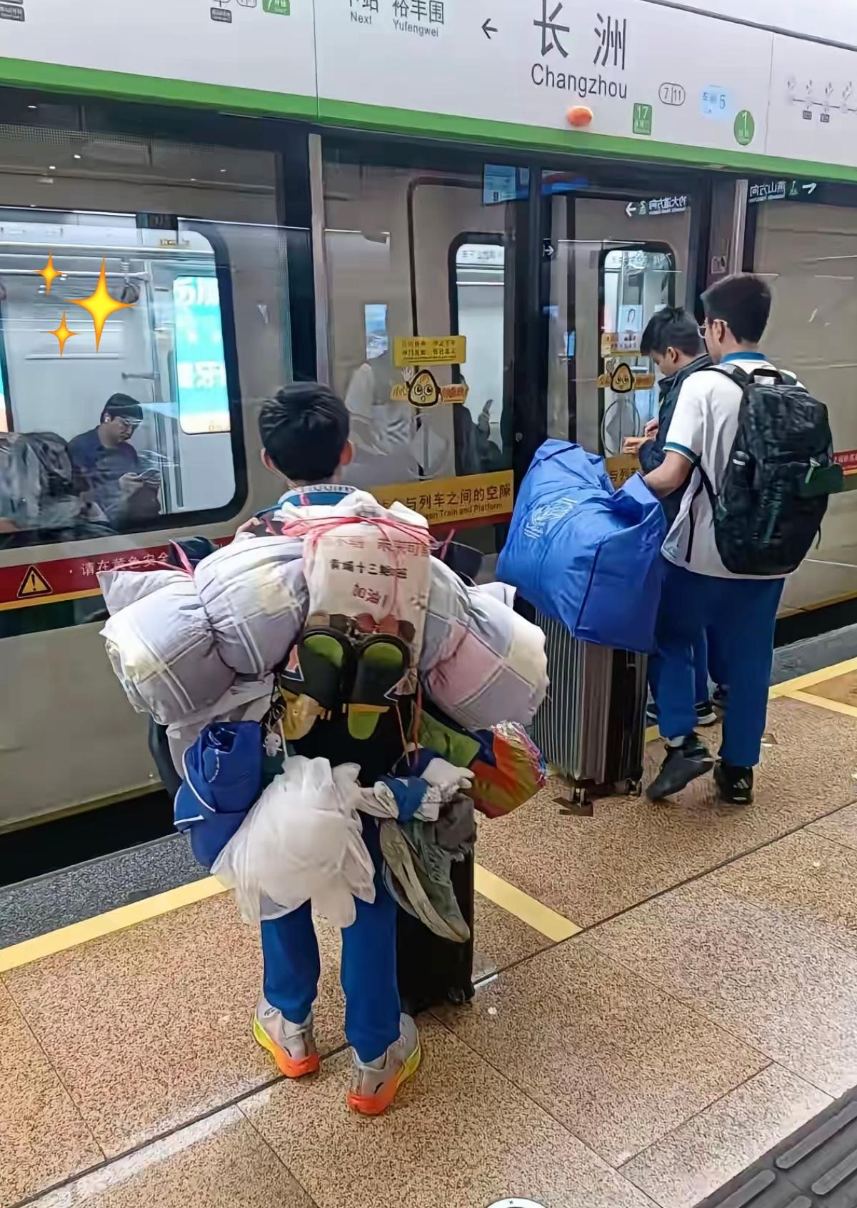 谁看了不竖大拇指!广州黄埔区这位初中生的寒假背影,真的戳中了无数人的心巴! 背着被子、蚊帐堆成小山的行李,独自在地铁站候车,这可不是作秀,而是他实打实的自理能力!提前在家用绳子演练打包,拒绝父母接送,说自己能“搞定”,这份独立真的甩了很多同龄人一条街。 现在太多家长把“成绩至上”挂嘴边,却忘了生活能力才是孩子最硬的底牌。这孩子珍惜物品不浪费,更不觉得自己扛行李丢人,这份踏实和底气,比任何奖状都珍贵。广州地铁男孩 广州初中生寒假