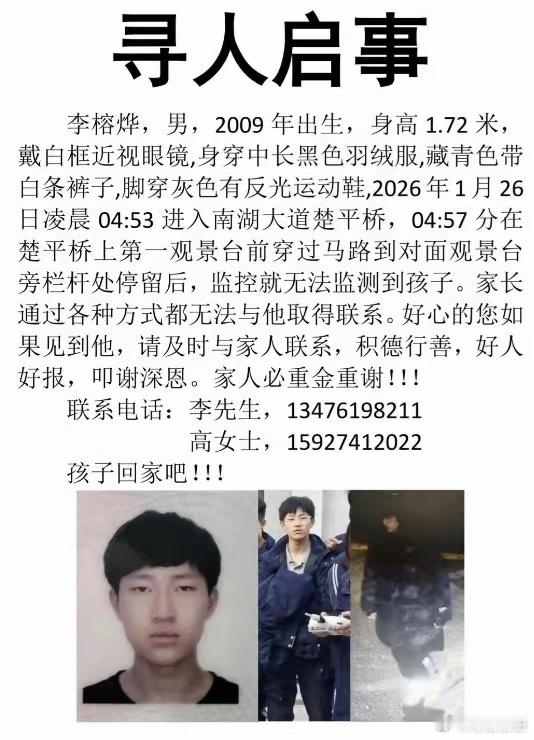 武汉警方通报16岁男生离家失联多日 武汉警方通报16岁男生离家失联多日