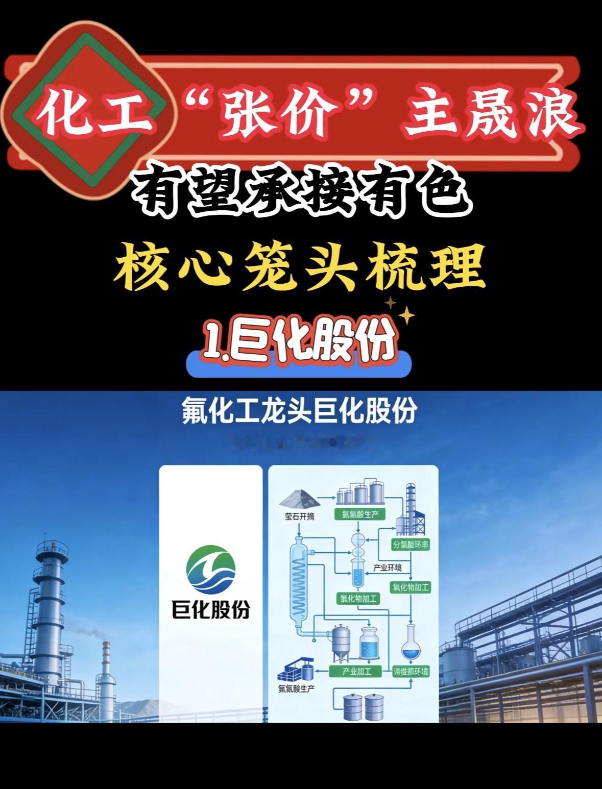 “化工龙头巨化布局氟化工全产业链,聚焦萤石加工与氢氯酸生产,产业优势显著,发展潜力大。" 纯碱行业龙头企业揭秘:远兴能源”🔥📈 化工龙头巨化股份全产业链布局,氟化工优势显著,有望承接有色行情,产业环境持续向好。