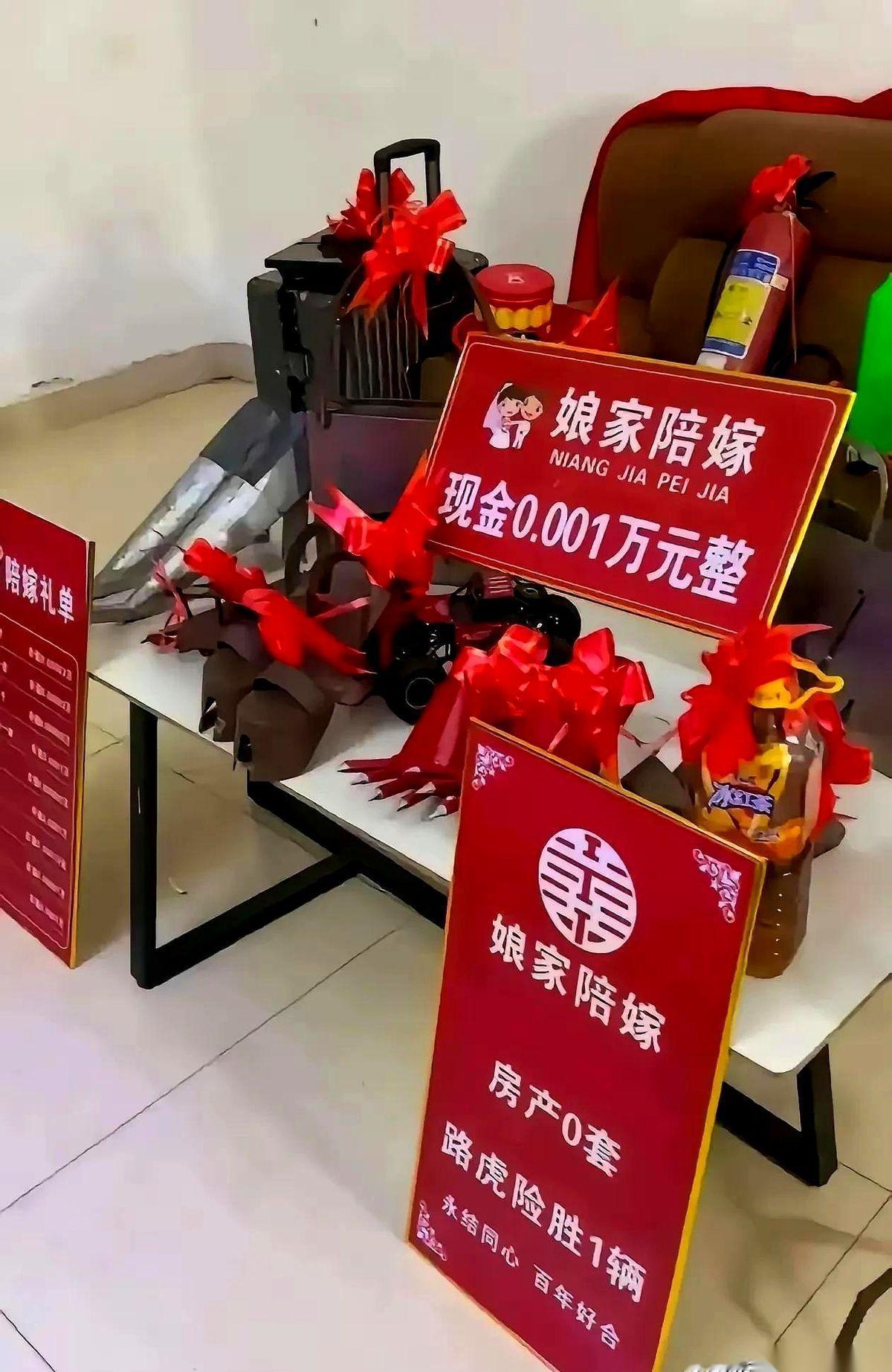 网上刷到一张大红的陪嫁单,刚打开,差点被第一行晃了眼。 陪嫁车:路虎。 底下亲友的嗡嗡声隔着屏幕都能听见,这手笔,够硬。 可镜头往那车标上再拉近一寸,不对劲了。那两个字龙飞凤舞,不是“路虎”,是“路虎险胜”。空气瞬间安静,仿佛有人按下了静音键。 这还没完。 单子往下,是陪嫁的压箱底现金。一长串数字,特别有仪式感:0.001万。 有人没反应过来,还在掰着指头算。旁边的人直接点破了:“一万的千分之一,十块钱。” 十块钱,用毛笔字工工整整地写在喜庆的大红纸上,旁边还画着个小小的爱心。 这一下,全场连那种尴尬的、想笑又不敢笑的咳嗽声都没有了。只剩下一种黏稠的、无声的寂静。 说真的,这到底是新娘家人的高级黑色幽默,还是真觉得这样能把形式走到位?