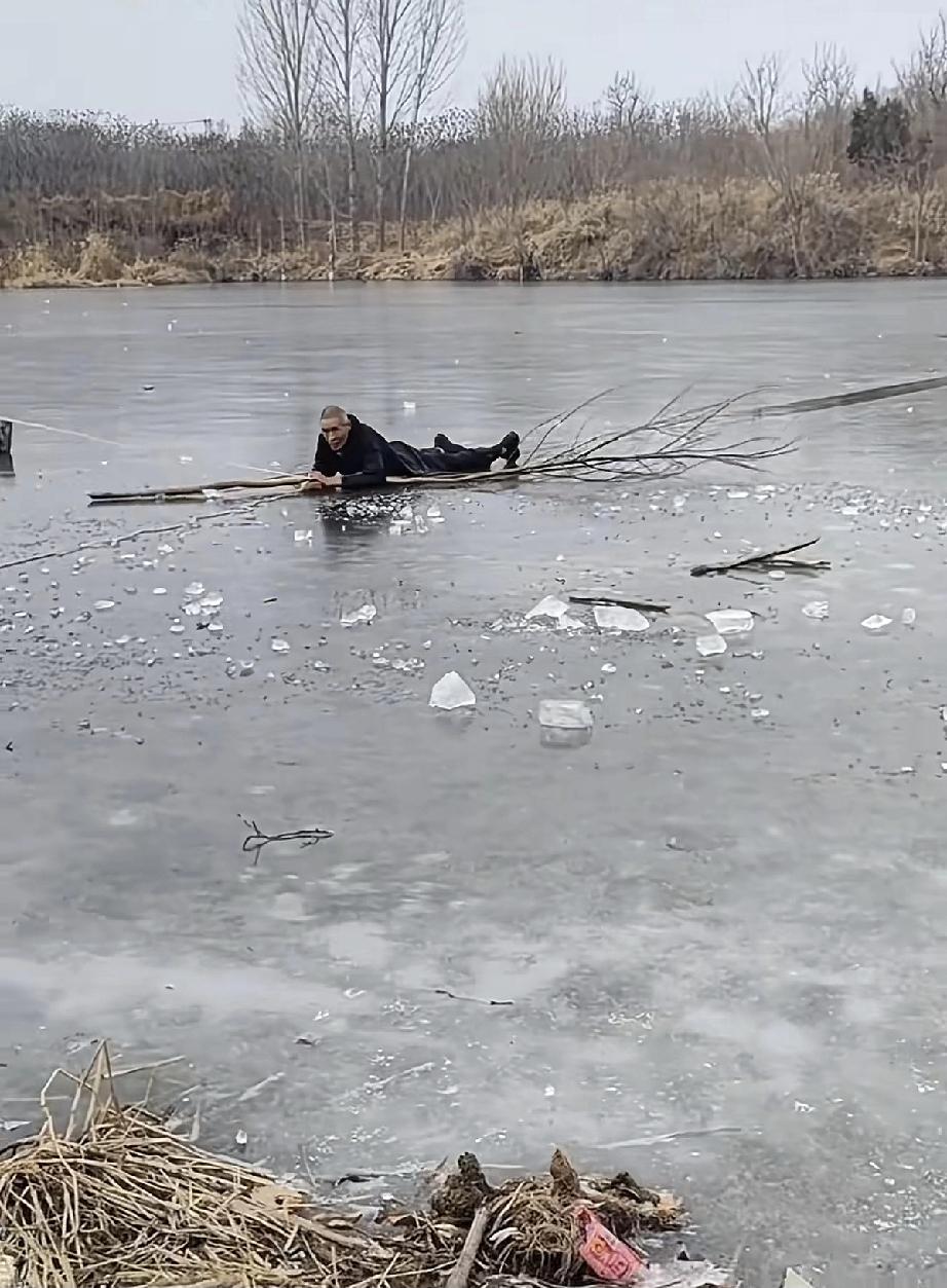 山东老人冰窟被救,施救者黑帽子大哥却遭到网友质疑,感觉这届网友真难伺候哟 前天,山东潍坊青州,一名老人不慎坠入了水库的冰窟窿,边牧犬围着冰窟窿不停狂吠,引起了路人的注意。 黑帽子大哥急中生智,找到一树枝迅速向老人抛去,让老人抓住,稳定住他的情绪,随后有人报警,并带来了绳索,大伙儿合力将老人拉了上来,老人成功获救。 在赞美救人义举之余,评论区更多网友在质疑黑帽子大哥,认为他的行为欠妥,认为那种方式丢树枝,很容易戳伤老人的眼睛,万一把眼睛戳瞎了,后果严重,树枝应该反过来丢。 其实大伙想得太多了,不要冤枉黑帽子大哥,在危急情况下,救命大于一切,哪有那么多时间去考虑,怎么顺手怎么来。 再说树枝抛向老人,老人会本能的闭眼,这个叫条件反射,被戳伤的可能性不大。 关键时刻,好人还是很多的,这个冰上救援的办法聪明,同时我看了视频,边牧犬忙上忙下,跟救援者一样着急。狗子有时候真的灵性又忠勇,确实是人类的好朋友,请善待它们。 (信息源:直播南京1月31日发布的视频)