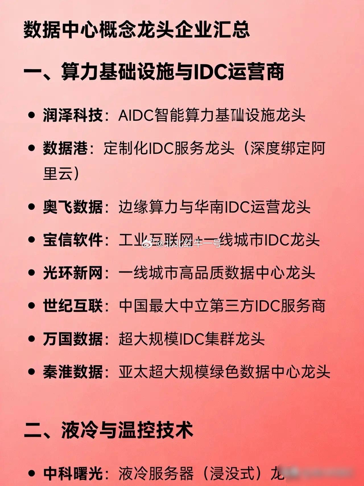 数据中心概念龙头企业汇总