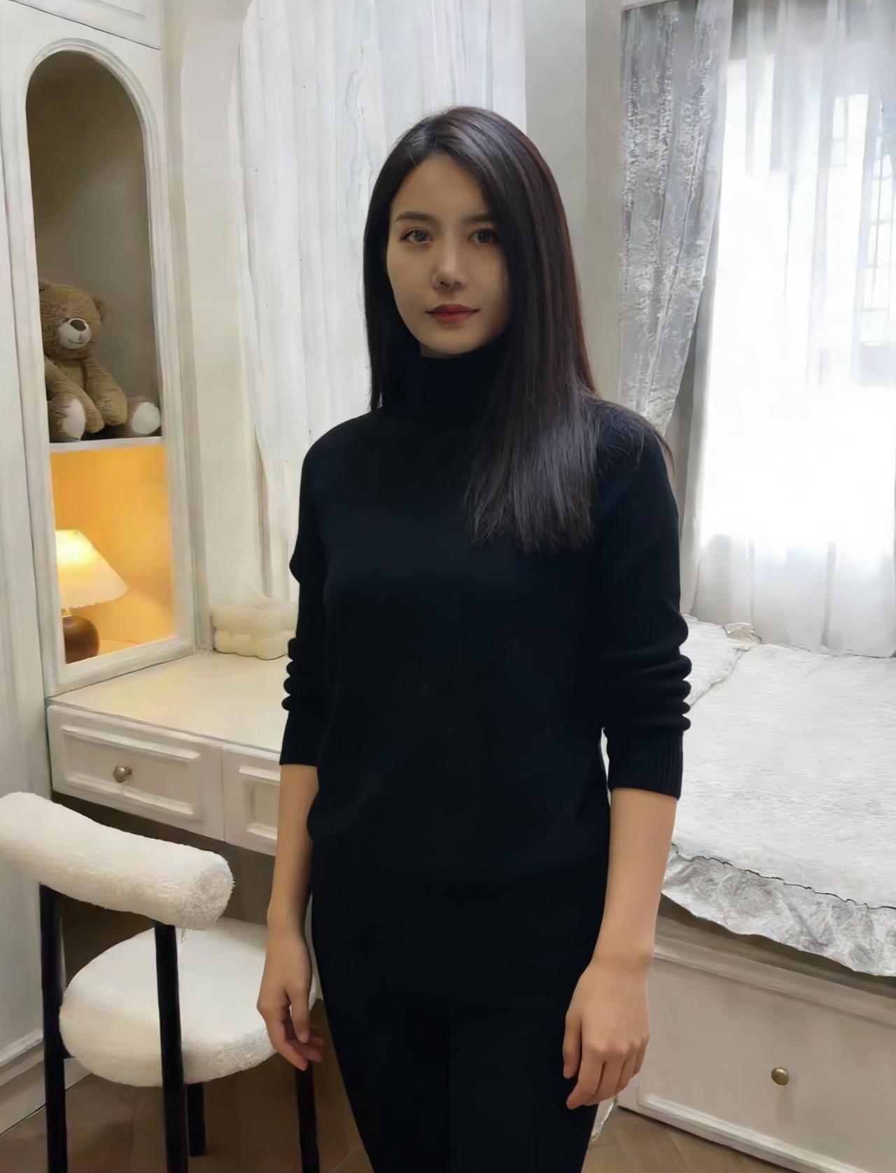 黑袄披霜立竹边,雪堆寒玉覆阶前。 清眸凝处浊世远,心与冰筠共皎然。
