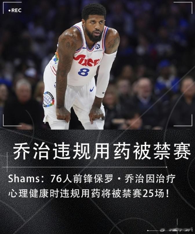 据名记Shams报道,保罗·乔治因违反联盟禁药政策将被禁赛25场。