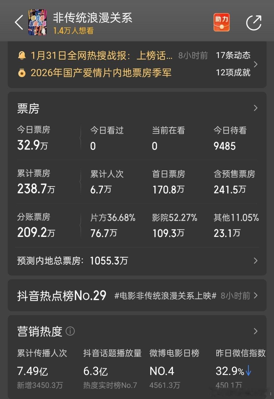 男人可以找男导演理解一下7.49亿传播人次的国产爱情片,怎么票房才238万啊,买一张电影票应该不难吧,电影院票房占比这么低?