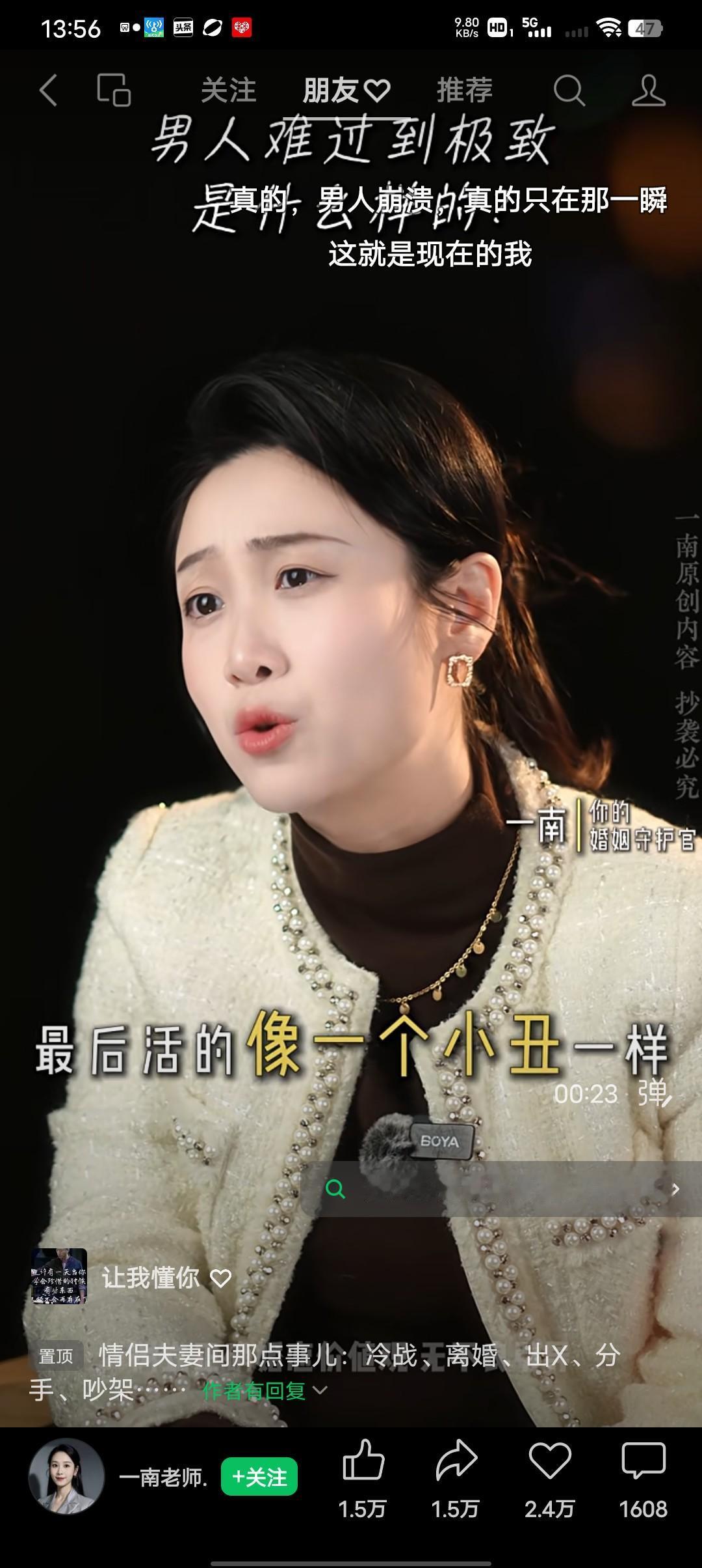 你知道一个男人难过的极致是什么样子吗? 不是那种嚎啕大哭,也不是那种歇斯底里,而是外人看不到的精神疲惫,这个世上的事再难再苦,只要咬咬牙也能熬过去,哪怕是头顶压力工作连轴转他也能撑下去,只是情绪却是一个例外。 女人在难过的时候可以哭可以流泪,但男人不行,男人不轻易把伤口揭给别人看,好像男人所有的事都必须要一个人扛,男人也想能有一个人对他说“别硬撑着,还有我在” 男人难过的释放方式就是,在自斟自饮在酒杯里,在不开灯的房间点燃的那只没有抽的烟里,男人的悲伤,不能像女人那样流泪哭泣,因为一句你是男人你就得扛下所有。 其实男人的感情也挺脆弱的,在外人面前开着玩笑谈笑风生的背后,却有你看不到的独属于男人的悲伤!其实男人也需要有一个能给他倾听的人,哪怕男人不需要有个肩膀让他靠,只是能让他说出来也是一种最难过的是释放!也许你递上的一支烟,还有你陪他喝的没有下酒菜的闷酒,对难过的男人来说就是一种无言的温暖!