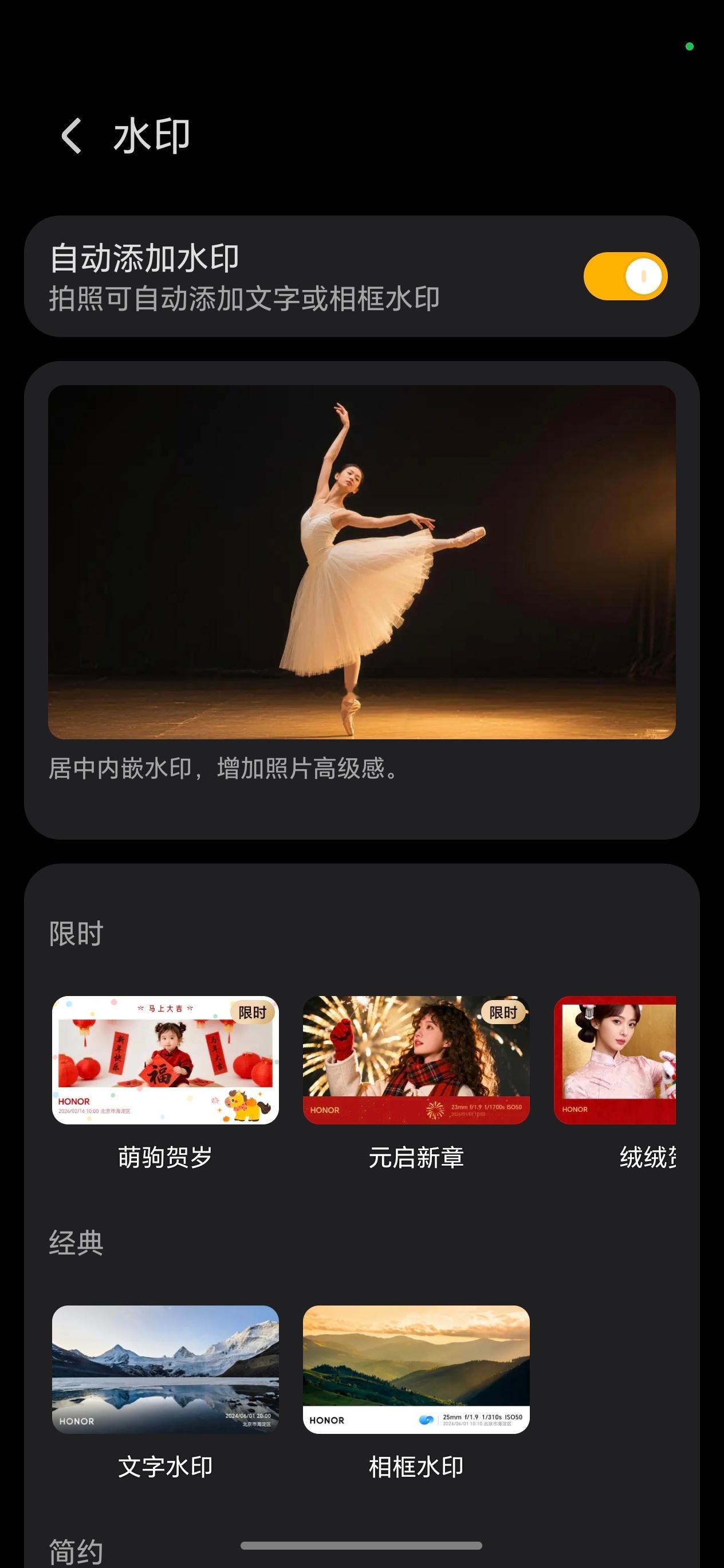荣耀手机软件层面的更新,挺丰富的主打一个,人有我也得有连水印都比别家丰富和有个性