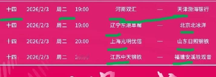 第14轮比赛都在下周二晚上进行!常规赛最后一轮比赛都在下周二晚上进行,不是分成周二和周三两天进行。四场比赛同时进行确保比赛的公平吧! 下周二晚上七点进行两场比赛,晚上八点进行两场比赛。常规赛最后一轮比赛,最终确定出最后两支队伍去打升降级比赛! 排超联赛第14轮赛程表如下。 周二晚上七点同时进行的两场比赛是第四和第五名对阵第七和第八名的比赛!天津女排对阵河南女排,北京女排对阵辽宁女排。第七名和第八名的辽宁女排和河南女排,几乎都不可能战胜对手拿下比赛。这样的话辽宁女排和河南女排几乎可以确定去打升降级比赛! 周二晚上八点的两场比赛上海女排对阵山东女排,江苏女排对阵福建女排。第六名福建女排几乎也不可能战胜江苏女排。本轮比赛的后三名队伍去挑战前面排名的队伍,几乎都不可能取胜! 第十四轮比赛周二晚上同时进行,重点关注天津女排对阵河南女排的比赛!天涯体育排球讯