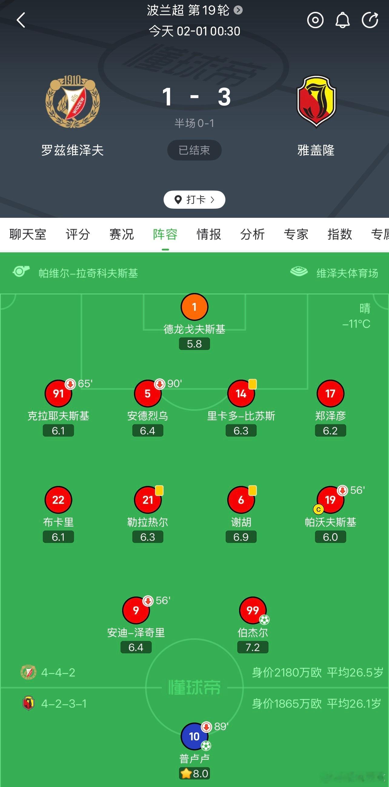 咱不传郑了哈昨天波兰超罗兹维泽夫1-3雅盖隆郑首发踢满。