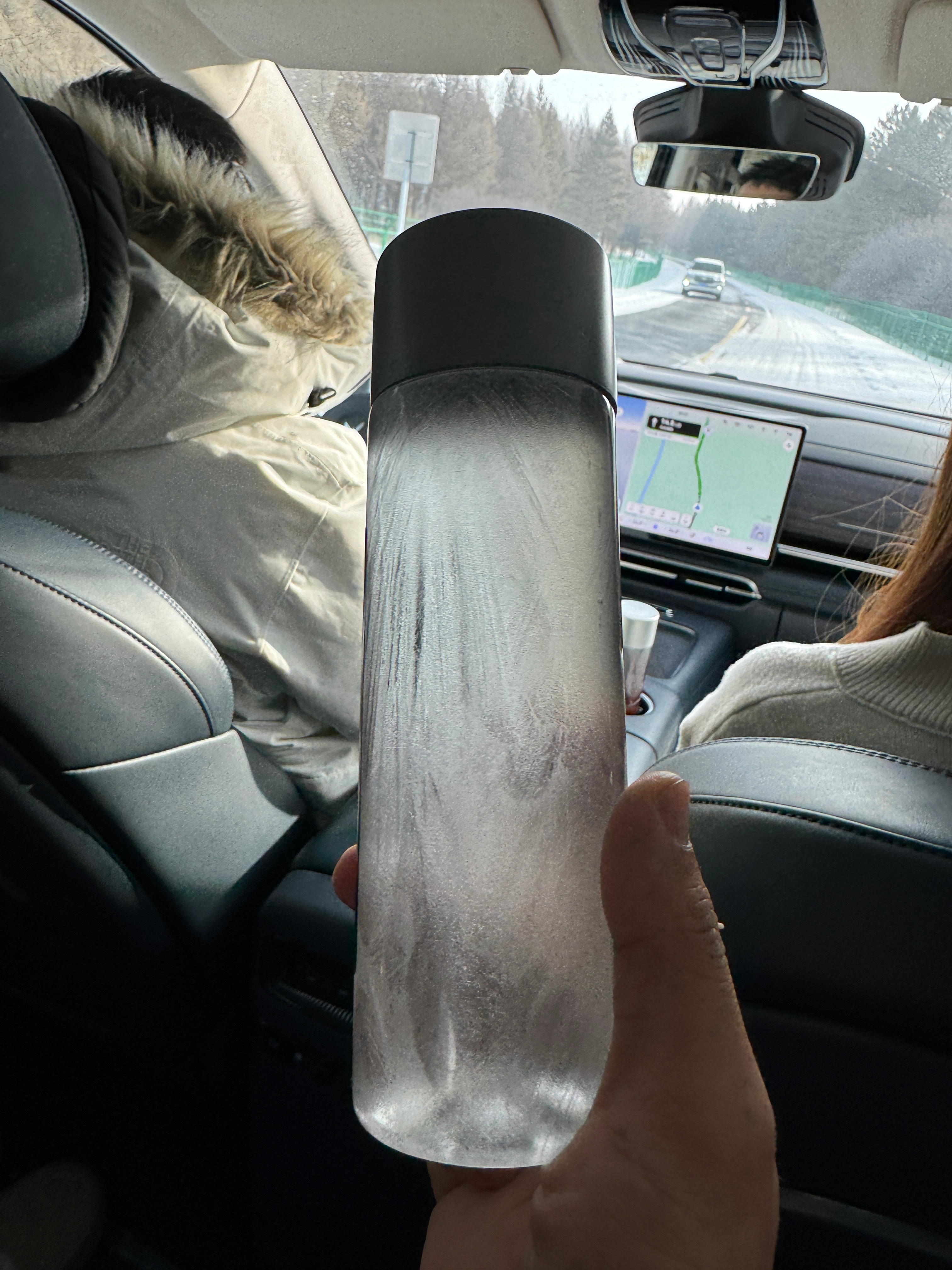 看看玻璃的厚度和放了一晚车内的水这地方很好下次不会在冬天来玩了 承德·塞罕坝森林公园
