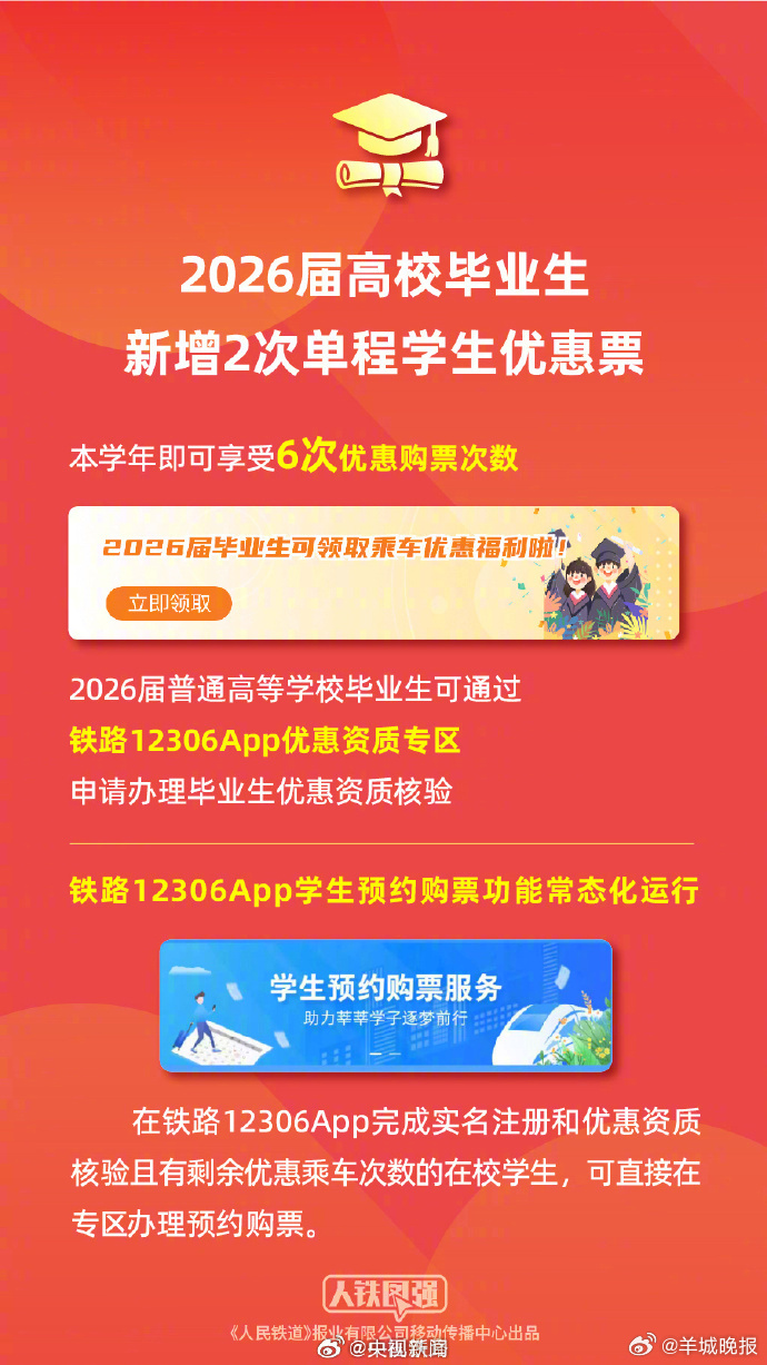 【转发提醒!#2026春节首日车票开售#】#直达车票抢不到怎么办#今天开始,铁路部门发售春节假期首日(2月15日)的车票。目前,铁路部门累计发售春运火车票已超5000万张。你准备啥时候回家?#已发售春运火车票超5000万张##静音车厢不是只让乘客静音#提醒:直达票抢不到?尝试分段购票(出发地-中途站+中途站-目的地)。选择邻近车站出发/到达,或接受中转换乘,12306会智能推荐最优中转方案。认准官方渠道:仅12306App/官网/车站窗口等,无第三方“加速包”“挑选车厢座位费”“会员费”,谨防加价购票骗局。2月1日:开售春节假期首日(2月15日)火车票2月2日:开售除夕(2月16日)火车票2月3日:开售大年初一(2月17日)火车票2月9日:开售大年初七(2月17日)火车票2月17日:开售元宵节(3月3日)火车票(央视新闻)(编辑:郑宗敏;审签:岑杰昌)