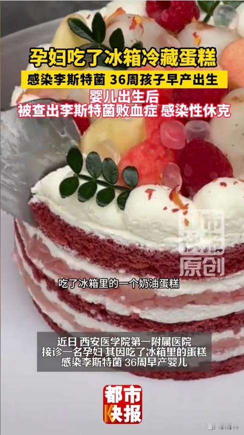 “悲剧还是发生了!”近日,陕西西安,一孕妇深夜感到饥饿难忍,就吃了点冰箱里的奶油蛋糕,没过多久,全身就开始发热,紧急送医后,检查发现胎儿严重缺氧,需要立即手术,而宝宝出生后更被确诊为李斯特菌败血症,网友:孕期饮食太关键,冷藏甜品别乱吃! 奶油蛋糕是家家户户都喜爱的甜品,口感绵密香甜,很多人习惯冷藏保存,以为能锁住新鲜,可谁能想到,冷藏的奶油蛋糕竟会变成“夺命甜品”,还差点让36周孕妇和腹中胎儿陷入生死危机。 据媒体1月27日报道,这名孕妇孕期嘴馋,看到冰箱里冷藏的奶油蛋糕,便吃了一块,本以为只是寻常解馋,却没在意蛋糕的冷藏存放时间,也没留意是否有变质迹象。 吃完蛋糕后不久后,她就开始发热,体温持续升高,短短5小时内,身体出现明显不适,家人察觉不对劲,立即将其送往医院。 经过医生紧急检查,发现胎儿已严重缺氧,情况万分危急,经全力救治胎儿顺利出生,但后续检查结果让所有人揪心——宝宝被确诊为李斯特菌败血症。 医生提醒,李斯特菌常存在于冷藏的乳制品、奶油蛋糕等食物中,孕妇感染的可能性比普通人高10-20倍左右,这种细菌可通过胎盘传给胎儿,引发败血症、早产、死胎等严重后果,即便胎儿出生,也可能面临终身健康隐患。 信息来源:《36周孕妇吃冷藏蛋糕感染李斯特菌致胎儿早产母婴