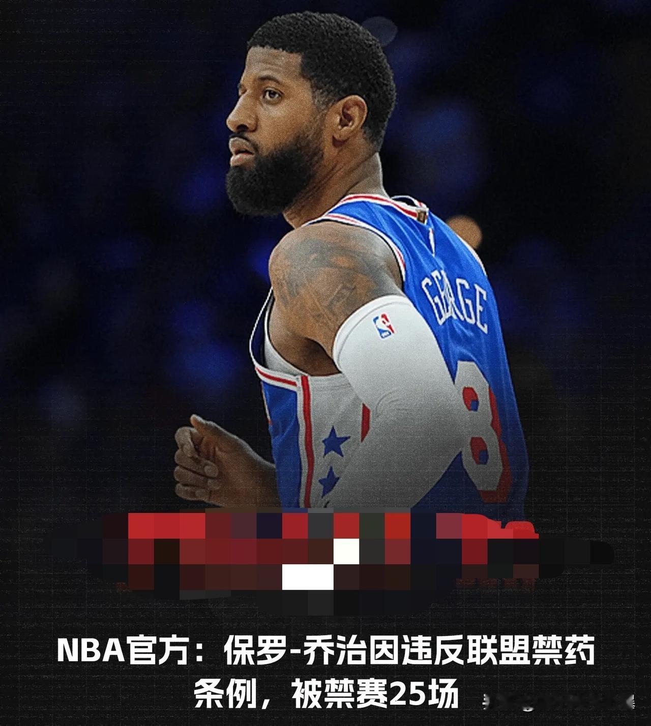 滑了!保罗乔治被禁赛25场,损失超过千万美元! 七六人还应差阳错省钱了!目前nba最大的垃圾合同,保罗乔治和恩比德! 保罗乔治发自我澄清声明:寻求心理治疗时误服不当药物,会承担全部责任!