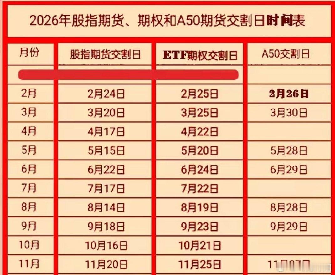 2026年2月因春节假期调休,三大金融衍生品交割日同步集中在节后时段,具体交割安排明确如下:2月24日为股指期货交割日,2月25日为ETF期权交割日,2月26日为富时A50股指期货交割日。综合当前市场运行数据及盘面特征分析,在25日ETF期权交割与26日富时A50股指期货交割这两个关键时间节点中,大概率将出现一个市场波动显著放大的交割窗口。