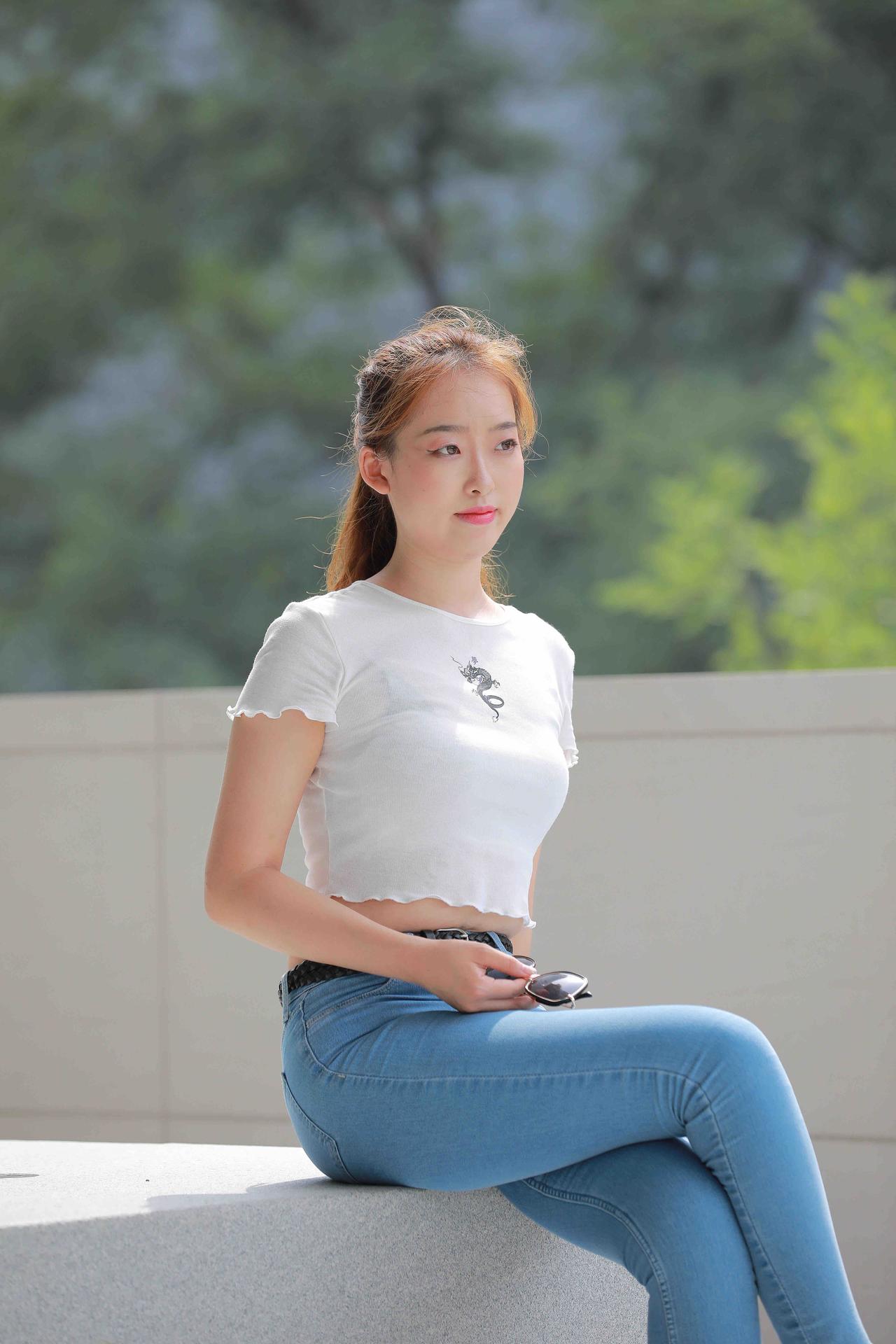 短款白T+浅蓝牛仔裤把“夏日清爽辣妹感”焊在街头了”今天这套“清爽辣妹风”穿搭,