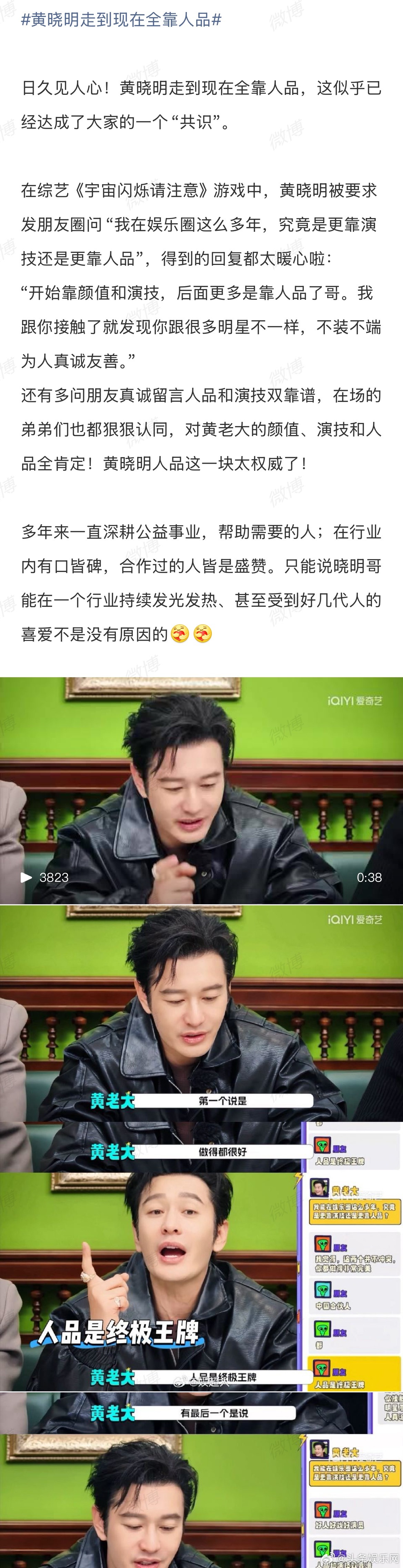 黄晓明人品演技双靠谱业内夸黄晓明人品演技双靠谱 “开始靠颜值和演技,后面更多是靠人品了哥。我跟你接触了就发现你跟很多明星不一样,不装不端为人真诚友善。”业内夸晓明哥人品演技双靠谱