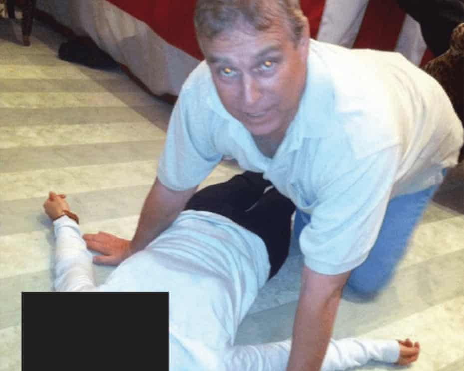 新公布的爱泼斯坦文件中的照片:被剥夺了英国皇室头衔的前英国“王子”安德鲁·蒙巴顿-温莎,伊丽莎白二世与菲利普的次子,趴在地上,看着镜头,身下是一名头部被打了码的女士。热点观点爱泼斯坦