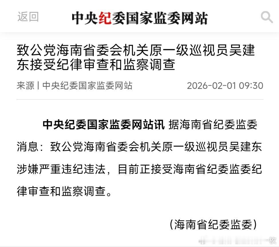 致公党海南省委会机关原一级巡视员吴建东被查!