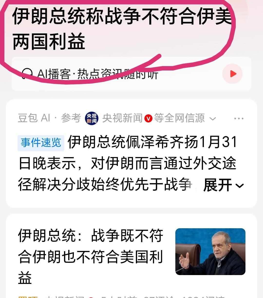 真的挺搞笑的。伊朗总统说战争不符合伊美两国利益。这就好比一只羊说:狼先生,你别吃我,你吃我会肚子疼。 狼吃不吃你,不取决于你的这种无力威胁,取决于狼当时的心情。甚至都不取决于它当时肚子饿不饿。 伊朗到现在都还没有明白这个道理,被威胁就是理所当然的了。 你看美国敢威胁朝鲜吗? 朝鲜会说这样的话吗? 多学着点。 点右上角关注我,我们一起去看这个魔幻的世界