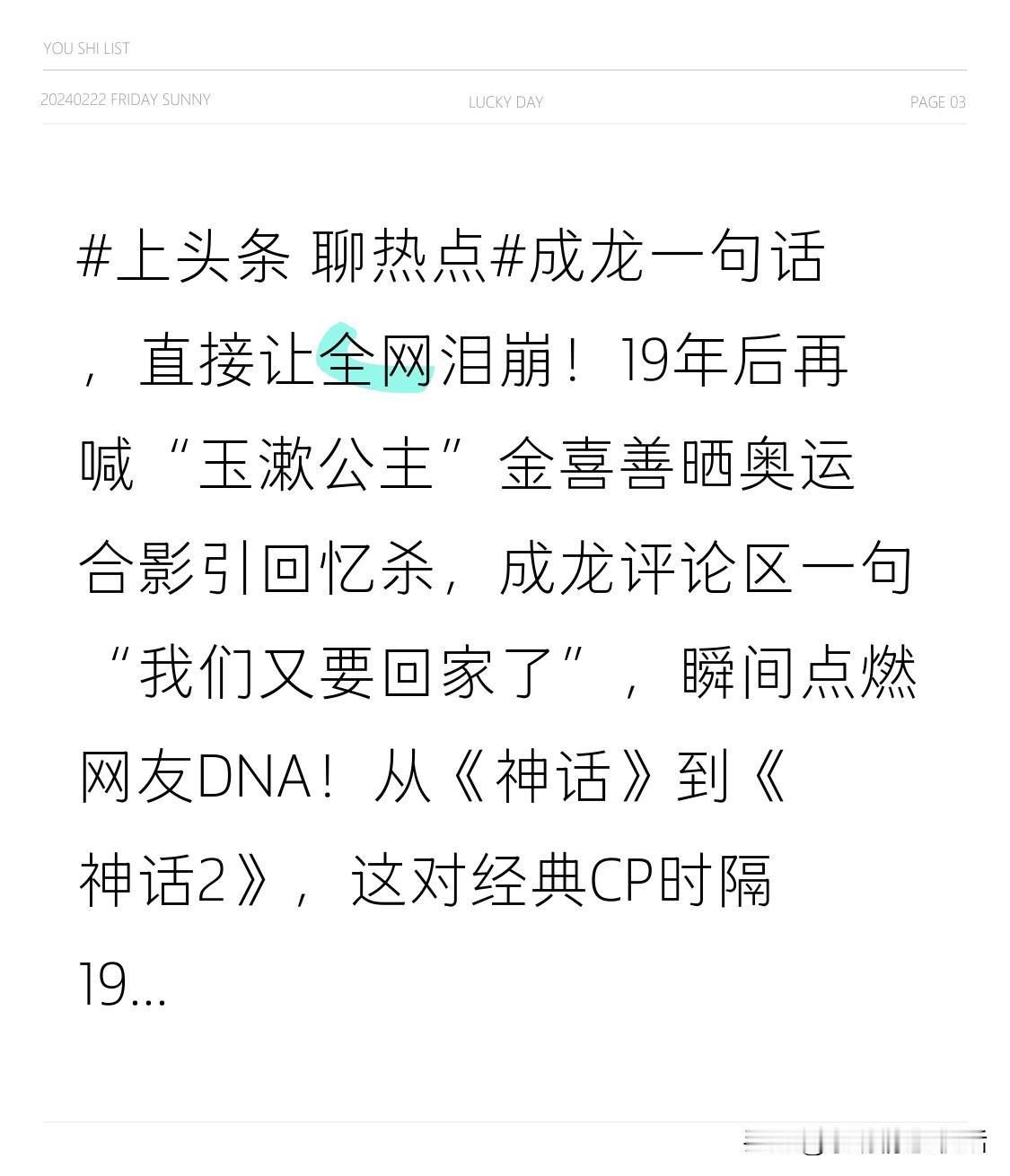 成龙一句话,直接让全网泪崩!19年后再喊“玉漱公主” 金喜善晒奥运合影引回忆杀,成龙评论区一句“我们又要回家了”,瞬间点燃网友DNA!从《神话》到《神话2》,这对经典CP时隔19年再合体,成龙还透露新作将“换个活法”,轻喜剧路线打破虐恋框架,网友直呼“活久见”! 成龙金喜善再续前缘,你期待他们的新故事吗?评论区聊聊你的“神话”记忆,点赞收藏,一起见证经典重现!