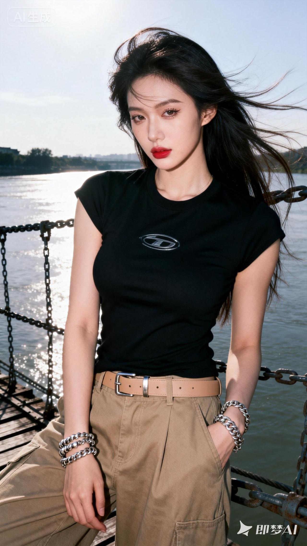 黑色背心+卡其色工装裤,简约又帅气!🌞👗👖