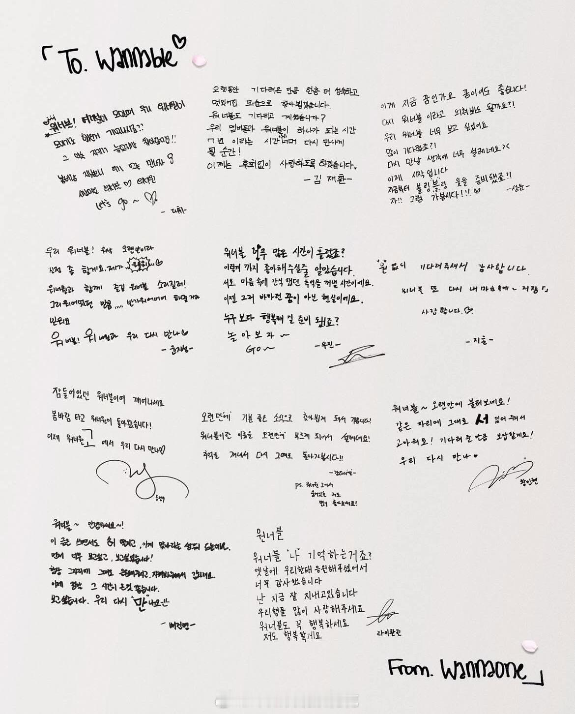 wannaone更新成员手写信WANNAONE9周年全员手写信出道9周年快乐