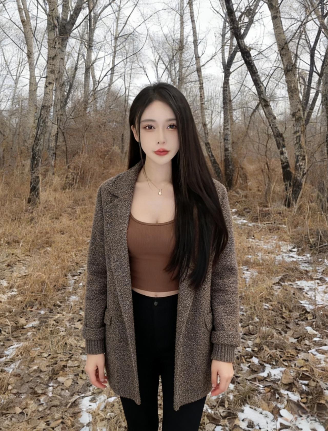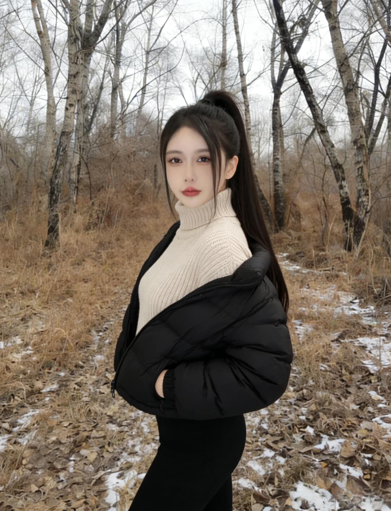 荒林剥去了绿的衣裳 白杨树的枝桠挑着薄雪 风掠过枯草时 卷走最后一声蝉鸣 在落叶与残雪的交界 她站成一道靓丽的风景