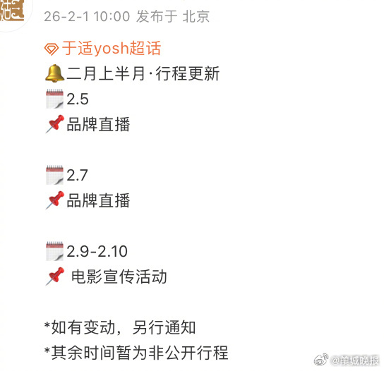 【男明星2月行程图出炉,有没有你的期待?】一张精心策划、信息清晰的明星行程图,充满了多重期待和看点,它远不止是一份简单的时间表。快来看看近期公布的男明星行程图,哪位的行程是你最期待了?欢迎在评论区聊聊↓↓↓人民画报##狗仔说金晨道歉中的公关话术大可不必##周扬青 整过容你以为别人看不出来呀##欧阳娜娜想要汪苏泷的大彩电# (编辑:郑宗敏;审签:岑杰昌)