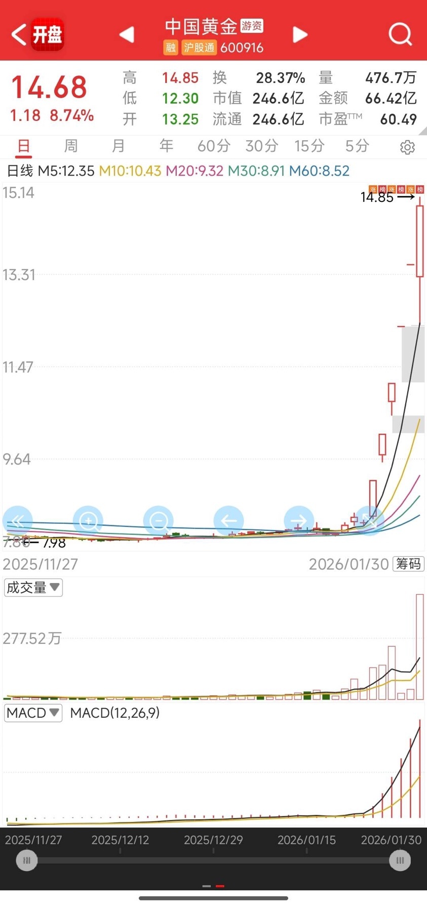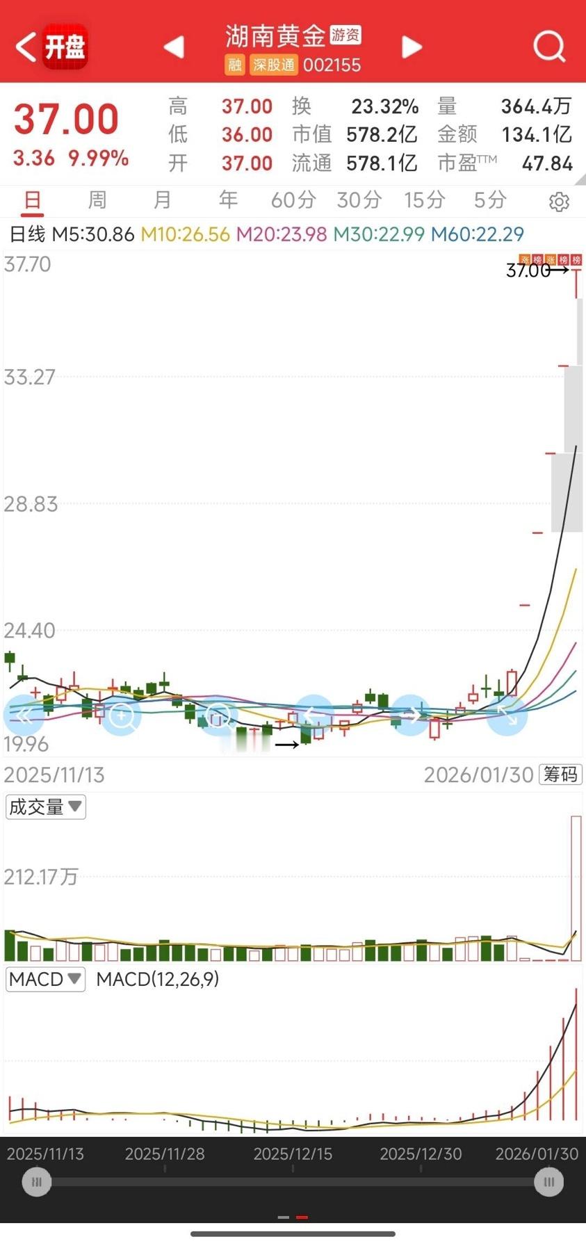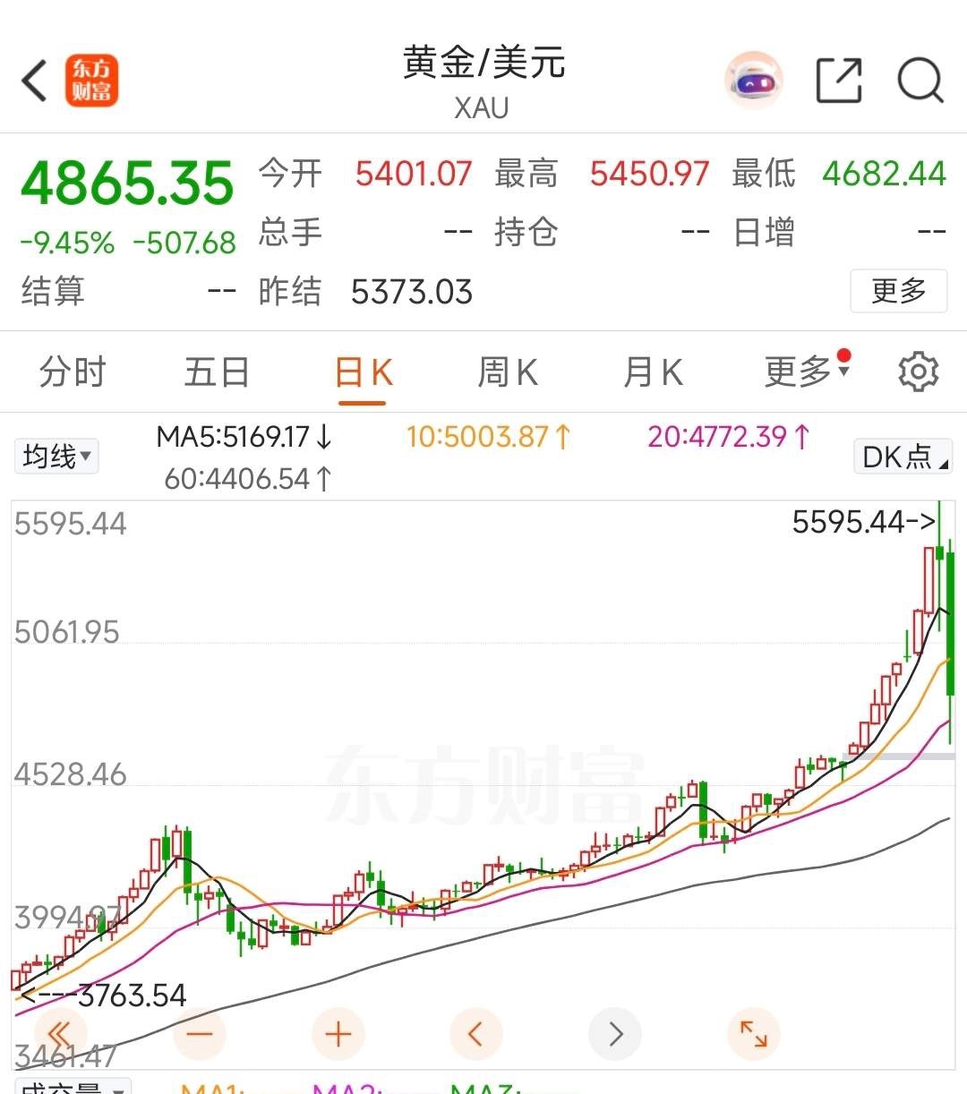 周五的黄金板块,几乎是跌停,只有这两个活口是涨停,然而周五收盘后,黄金价格又大跌9.5%,到了4865美元。