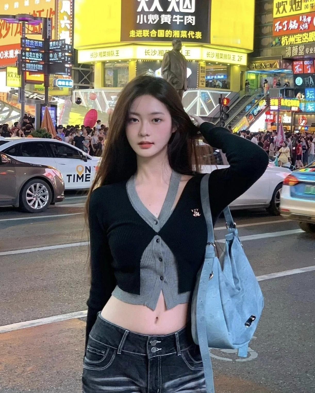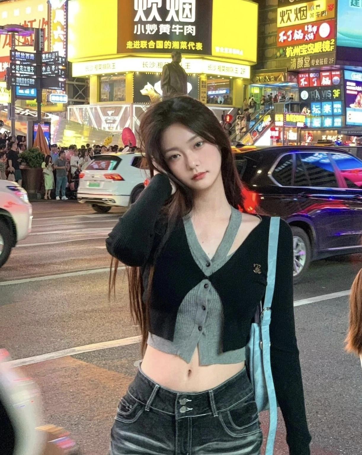 夜晚的繁华街头,时尚少女与车流交织,尽显都市魅力。