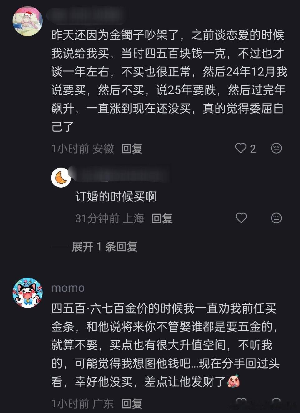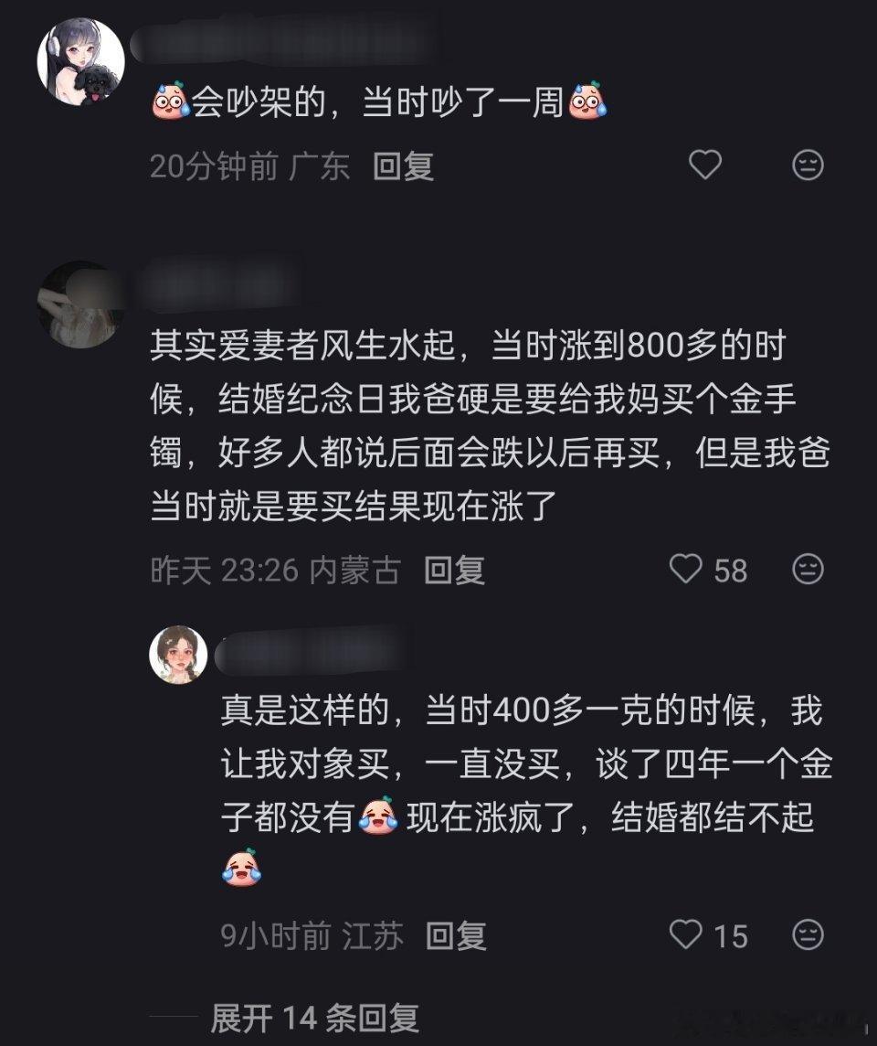 🔻原来有这么多情侣因为黄金涨价而吵架啊。🔻还发明了“爱妻者风生水起”这个概念