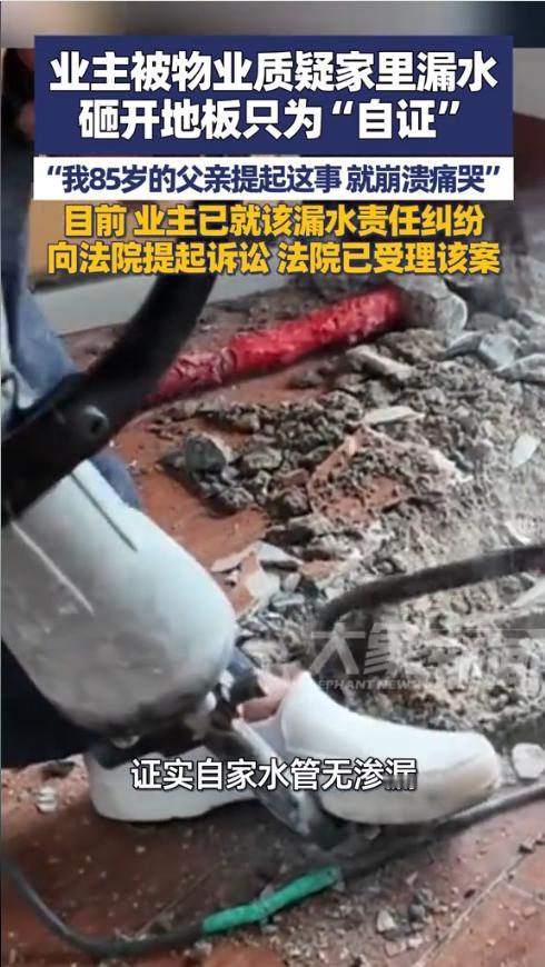 “严查到底!”2021年6月,海南海口,一小区有业主反映屋顶漏水,物业一楼咬定是一位女子家,并要求女子一家赔偿,尽管女子已经做了检测,甚至砸开地板自证都没有用。物业反复逼迫催缴费用,导致女子85岁父亲整日以泪洗面,感叹日子没法过了。 四年前的一天,苏女士所在的小区楼里有几家住户突然房顶开始漏水,墙壁都湿了,大家向物业反映情况后,物业竟一口咬定是苏女士家里的隐蔽水管发生了爆裂导致的。于是苏女士找了装修队,给家里做了检测,向物业证明并不是自家。 而后物业也认可了,并检查后承认是公共管理区域的责任。本以为事情就结束了,可是没多久,小区换了负责人,竟再次表明是苏女士家漏水,并要求苏女士一家赔偿。不仅如此,还整天打电话给孙女士的父亲进行催缴。 苏女士很是气愤,换了人就推卸责任。于是为了还父亲一个清白,就请来装修队和公证处,当面砸开装修15年的地板,证明不是家中漏水,没想到物业竟说是苏女士此前偷偷装修好了,再砸开的! 这一说法让苏女士一家很是气愤,简直欺人太甚!苏女士的父亲表示,如果是自己家漏水,可以负相应责任,但明明是物业的问题,还要在反复自证后被诬陷,简直是没天理! 随后苏女士一家向法院起诉了物业,声称只要一个公道! 网友表示,遇到不讲理的物业,简直没处说理去。也有网友建议,物业方应当赔偿老人的精神损失费,受委屈这么多年,可不是简单的还清白就行的。 信息来源:《1月31日(报道)海南海口,业主被物业质疑家里漏水,砸开地板只为“自证”,“我85岁的父亲提起这事就崩溃痛哭”,目前业主已就该漏水责任纠纷,向法院提起诉讼法院已受理该案》大象新闻