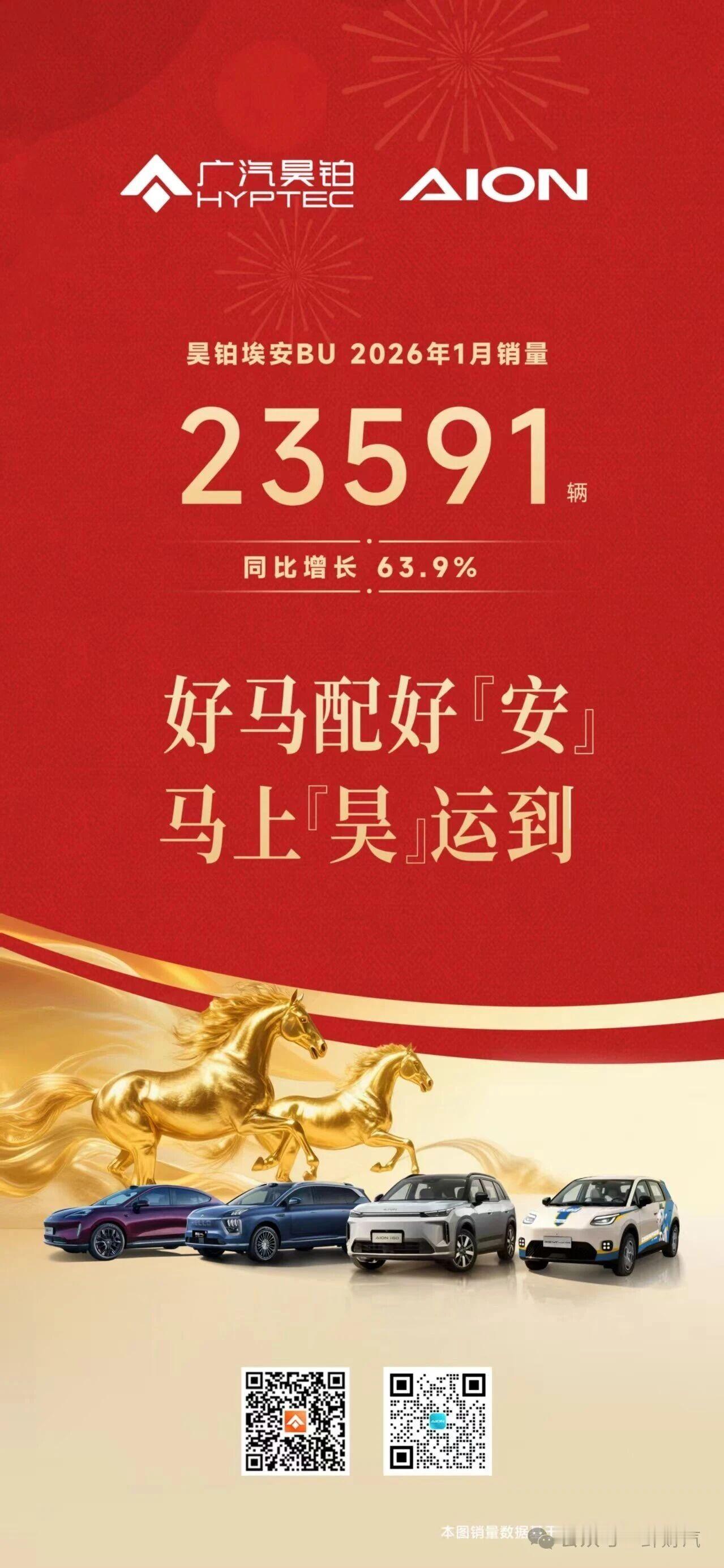 昊铂埃安车BU 1月销量23591台,同比增长超63%。哎,这次2026年姿势不