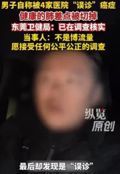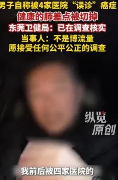 广东东莞,男子咳嗽非常严重,他去检查,结果医生告诉他,他的肺部有恶性肺结节,要马上手术,男子辗转4家医院,4个医生诊断,男子都被诊断为癌症,男子认命,决定手术,可手术之前,助理医生却告诉他,他的肺干干净净的,不需要住院手术。 事情发生在今年初,男子张先生(化名,45岁)近一个月来出现持续咳嗽、咳痰和轻微胸闷的症状,起初他以为只是普通感冒或季节性支气管炎,并未放在心上。 然而,随着咳嗽加重,夜间频繁惊醒,张先生决定前往医院进行详细检查。 第一次,他来到当地一家三甲医院的呼吸内科,经过CT扫描,医生在他的肺部发现了“可疑结节”,并告诉他可能是恶性肿瘤,需要尽快手术切除。 面对医生的诊断,张先生感到震惊和恐慌,但心里仍抱有一丝侥幸心理,想要再求证。 随后,他辗转来到第二家医院复查。 经过更高精度的影像检查,另一位医生再次确认:肺部结节“高度可疑”,癌症的可能性极大,建议立即手术。张先生当时几乎崩溃,他想象着自己未来的抗癌之路和家庭可能面临的压力。 第三家医院、第四家医院,结果都是相同的——“恶性肺结节,需手术”。连续四家医院的诊断让张先生彻底认命,他开始在心理上接受即将到来的手术和治疗。 “那段时间,我天天晚上都在想,自己是不是就要和家人说再见了。”张先生回忆时依然眼含泪光。作为家中唯一的经济支柱,他更担心手术带来的风险以及家庭的未来。 然而,手术当天,一切却出现了戏剧性的反转。手术前,负责协助医生的助理医生在进行术前检查时,却惊讶地发现:张先生的肺部“干干净净”,完全没有任何恶性结节存在。 经过复核CT影像和体检结果,医生们终于意识到,这名男子此前在四家医院所接受的诊断全部错误。 助理医生当场告诉张先生,他不需要手术,更不必住院治疗。这一消息让张先生喜极而泣,“我从未想过,我居然被误诊了四次,这四次误诊差点让我以为生命走到了尽头。” 事后,张先生要求医院和相关医生进行责任追查,但他也坦言:“我不想打官司,我只希望以后能有人注意检查的准确性,不要再有其他人经历我这样的恐慌。” 事件一经曝光,很快在网络上引发热议。网友纷纷表示震惊和愤怒:“四家医院都误诊,真是吓死人了!” “医疗系统的责任心在哪里?”、“希望张先生能平安无事,也希望医院能改进诊疗流程。” 同时,也有医学专业人士发声,指出这类误诊问题的根源可能包括:影像解读不精准、医生经验判断差异、医疗机构之间缺乏统一诊断标准等。 一位呼吸内科医生在评论中表示:“虽然医疗技术不断进步,但影像检查依然存在一定主观性,因此复核和多学科讨论非常必要。” 社会上也出现了更多反思声音。有心理学专家提醒说,被误诊为癌症的患者在心理上承受的压力往往比实际病情更严重,容易引发焦虑、抑郁甚至身体功能受损。 专家建议,面对重大疾病诊断,患者可寻求第二、第三意见,并注意心理疏导。 在媒体报道和网友热议中,张先生成为了一个典型案例,提醒公众对医疗信息保持谨慎,同时也提醒医院和医生提升专业判断和责任意识。 截至目前,张先生的身体状况良好,他表示已经恢复正常生活,同时呼吁社会关注误诊问题。 当地医疗监管部门也表示,将对相关医院的诊断流程进行调查,并加强影像科室的审核制度,以防止类似事件再次发生。
