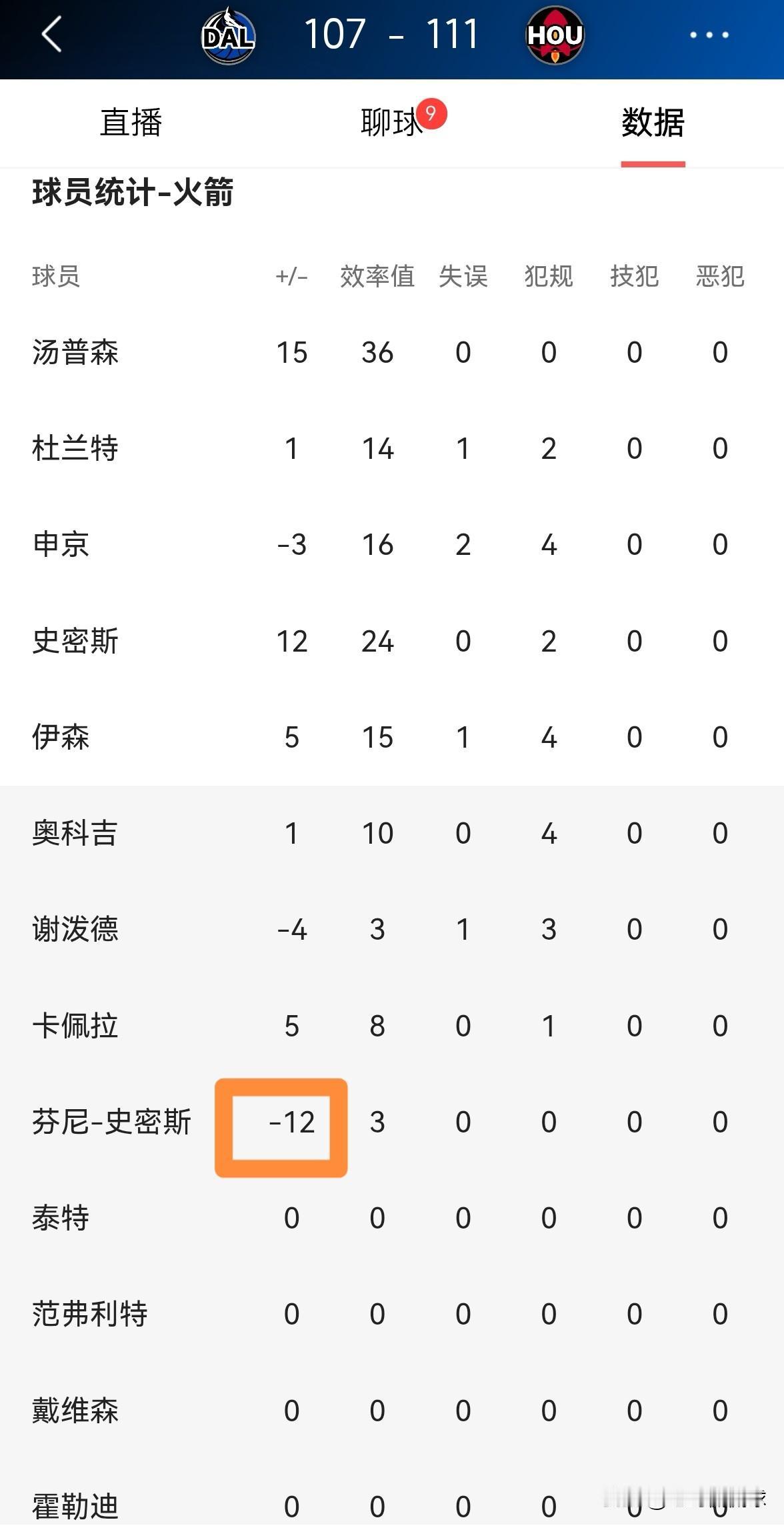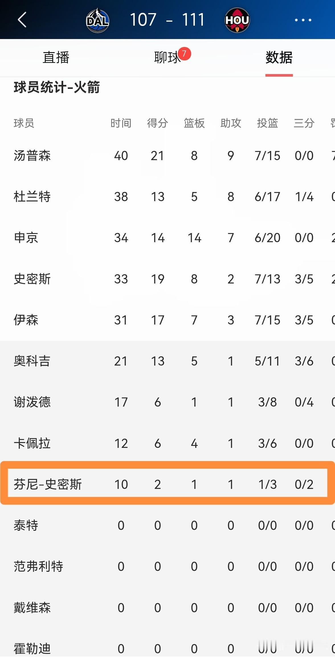 我强烈建议火箭趁早交易走芬尼-史密斯!在今天火箭主场以111:107险胜独行侠的比赛中,芬尼-史密斯又一次的迷失了自我,他在替补出战的10分钟里,投篮3中1,其中三分球2中0只得到2分,他的场上正负值为全队最低的-12。 值得注意的是,由于芬尼-史密斯的状态过于糟糕,因此他仅仅得到了10分钟的上场时间。坦白说,以芬尼-史密斯如今的竞技状态来看,他很难成为火箭的夺冠拼图,火箭应该趁早将他交易走才是明智之举。