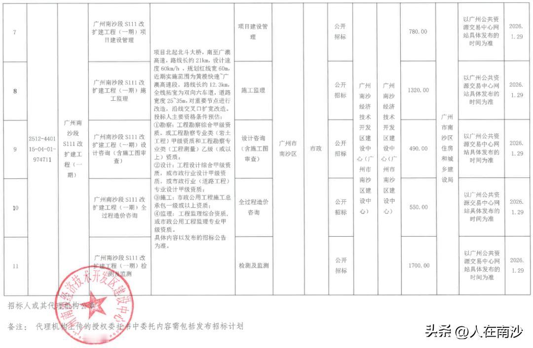 【S111省道扩建终于来了!】南沙经济技术开发区建设中心发布广州南沙段S111改扩建工程(一期)招标计划,预估发包价87330万元。 根据公告内容,项目近期实施范围为黄榄快速~广澳高速段,路线长约12.3km,全线拓宽为双向六车道,道路宽度25~35m,对重要节点进行改造,沿线交叉口扩宽改造。 根据介绍S111省道南沙段修建于90年代初,路段只有双向4车道,车道少又窄。而且由于是免费通行,可以对接广澳高速,南沙客运港等多条高速,因此这几年也是成为大货车的必走之路。经常导致塞车和事故多发。 值得注意的是,S111省道不久之前才进行了一次提升,重新铺设了路面,甚至在大岗灵山的那段,还提升优化了人行道绿化等设施。