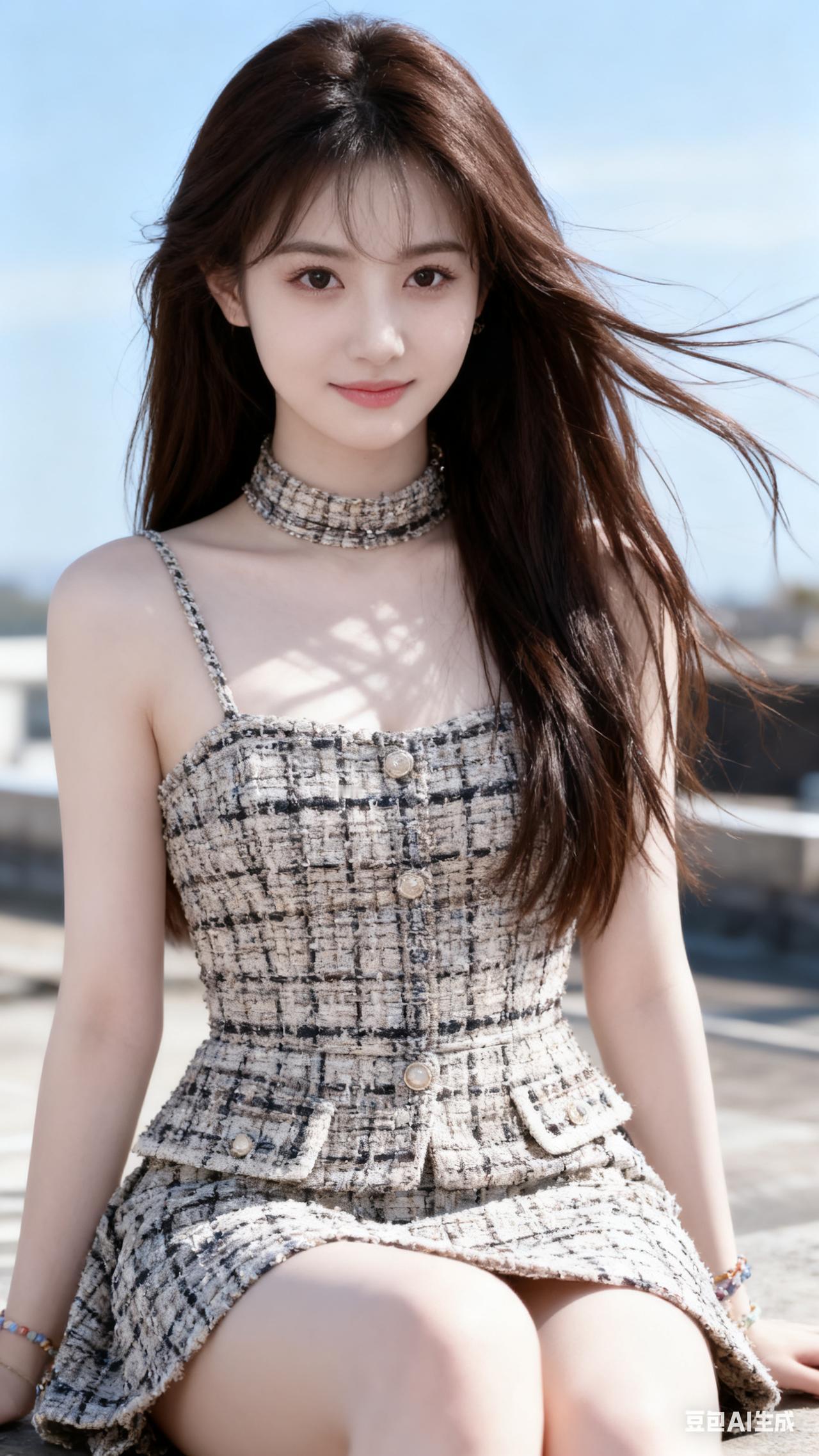 甜美粉裙少女,阳光下的温柔微笑😊