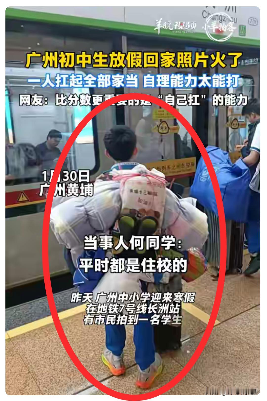 广州初中生何同学一人扛起全部家当:少年的脊梁,压不垮的成长! 十几斤行李压弯的是脊背,压不弯的是独立。无人接送的背影,是成长最沉默的注脚——所有独自扛过的重量,终将化为前行的力量……
