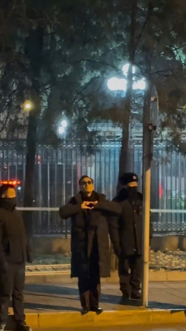 张天爱跟素人合影,胯真的好宽,大宅院似的