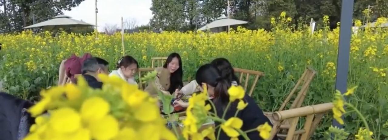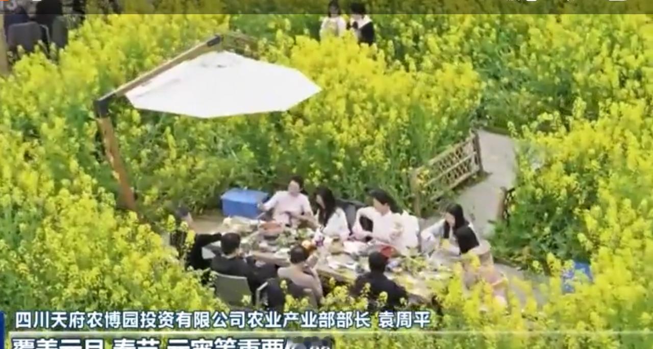 在四川天府农博园,千亩油菜花迎来盛花期,明黄花海与穹顶建筑相映成趣。游客们围坐花海间吃坝坝宴、逛市集,骑行爱好者沿公路追风而行。园区通过错峰种植将花期延长至四个月,串联起春节、元宵等假期,让这片土地成为农文旅体深度融合的乡村振兴新样板。