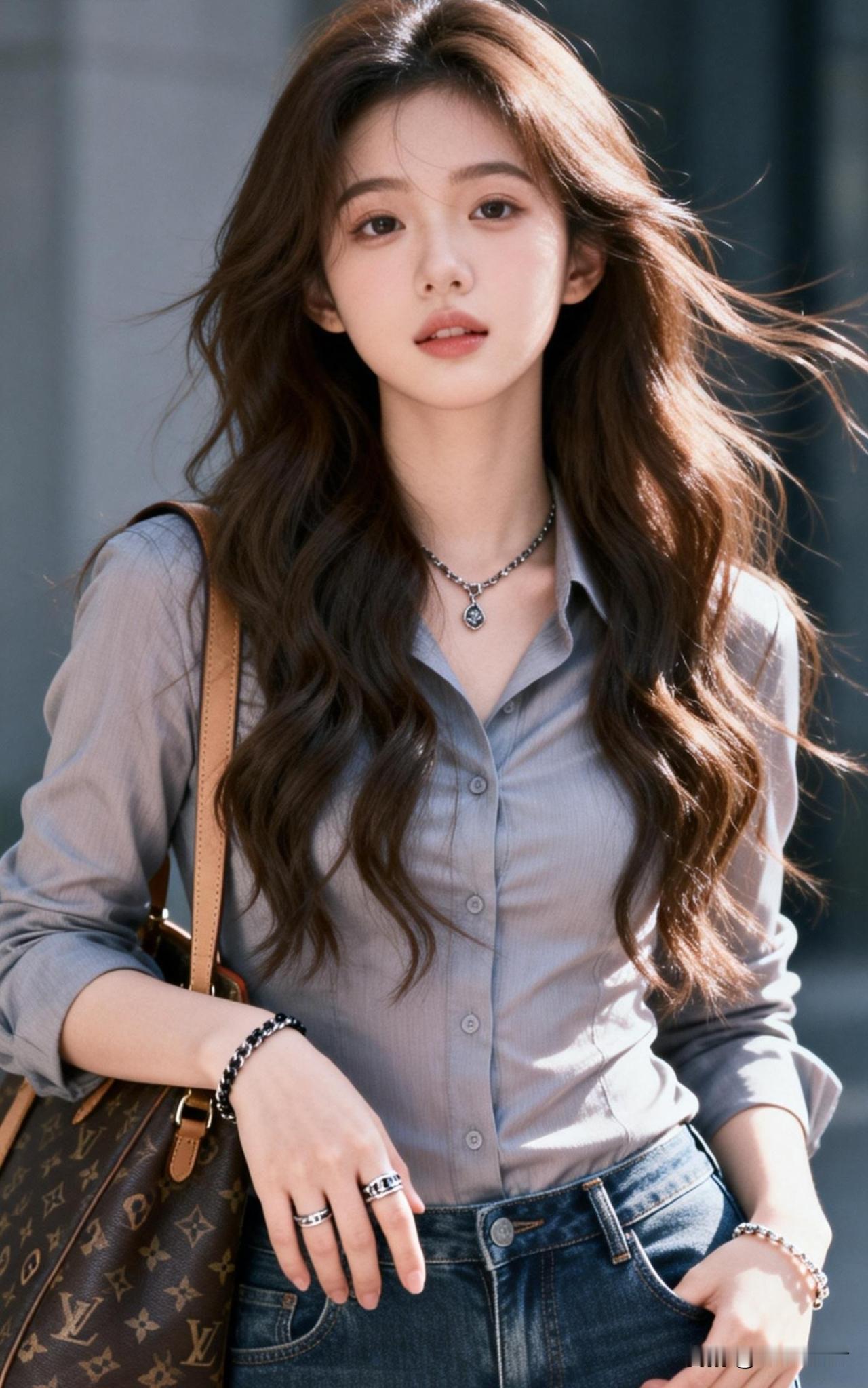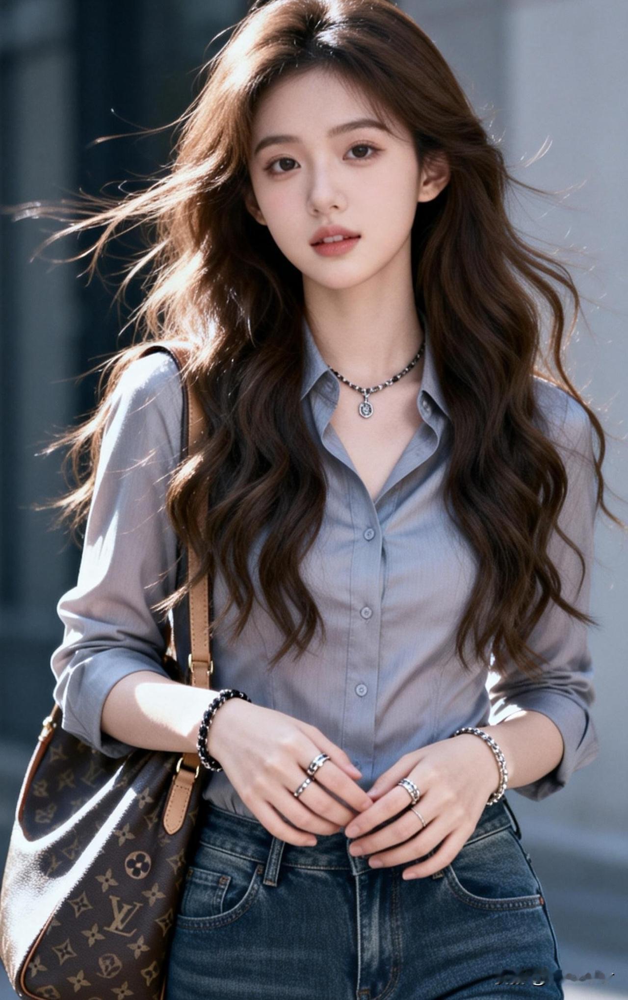 风拂长发,步履轻盈。