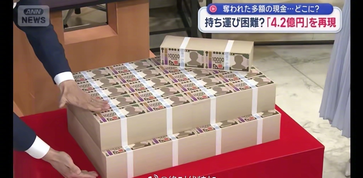 东京街头发生重大抢劫案日本发生重大抢劫案,日本警察效率太低,还没有抓到劫匪,不过,日本电视台效率比较快,已经模拟出了4.2亿日元的体积有多么大?