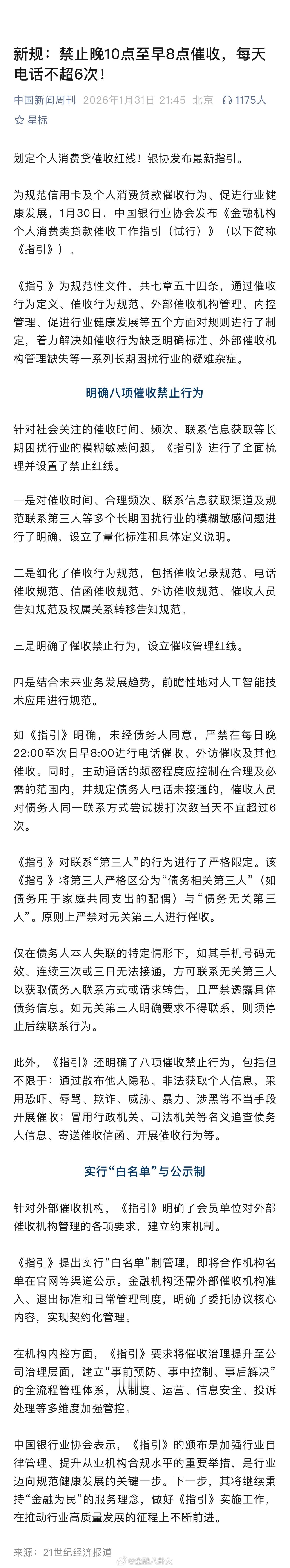 新规:禁止晚10点至早8点催收,每天电话不超6次!