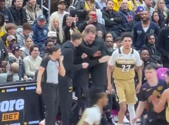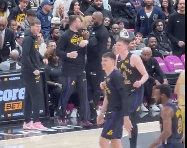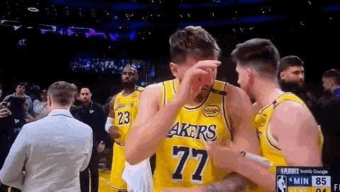 只有老詹能这么干了! 东契奇在庆祝的时候,老詹从背后锁住东契奇! 这让东子有点不舒服,有点小生气! 不过,当他回头看到是老大哥詹姆斯的时候,立马气消了! 随即跟老詹拥抱,笑得非常开心! 东契奇:詹哥,原来是你啊,那没事了! 要是别人的话,那东契奇高低得喷上两句! 但是对于老大哥詹姆斯,自己的偶像,那东子可是打心底尊重,怎样都行! 东契奇的性格还是挺好的,也是大家都会喜欢的球员! 现在湖人是东契奇的球队了,绝对的老大! 但是,只要老詹还在湖人,那大哥,只能还是詹姆斯! 詹姆斯